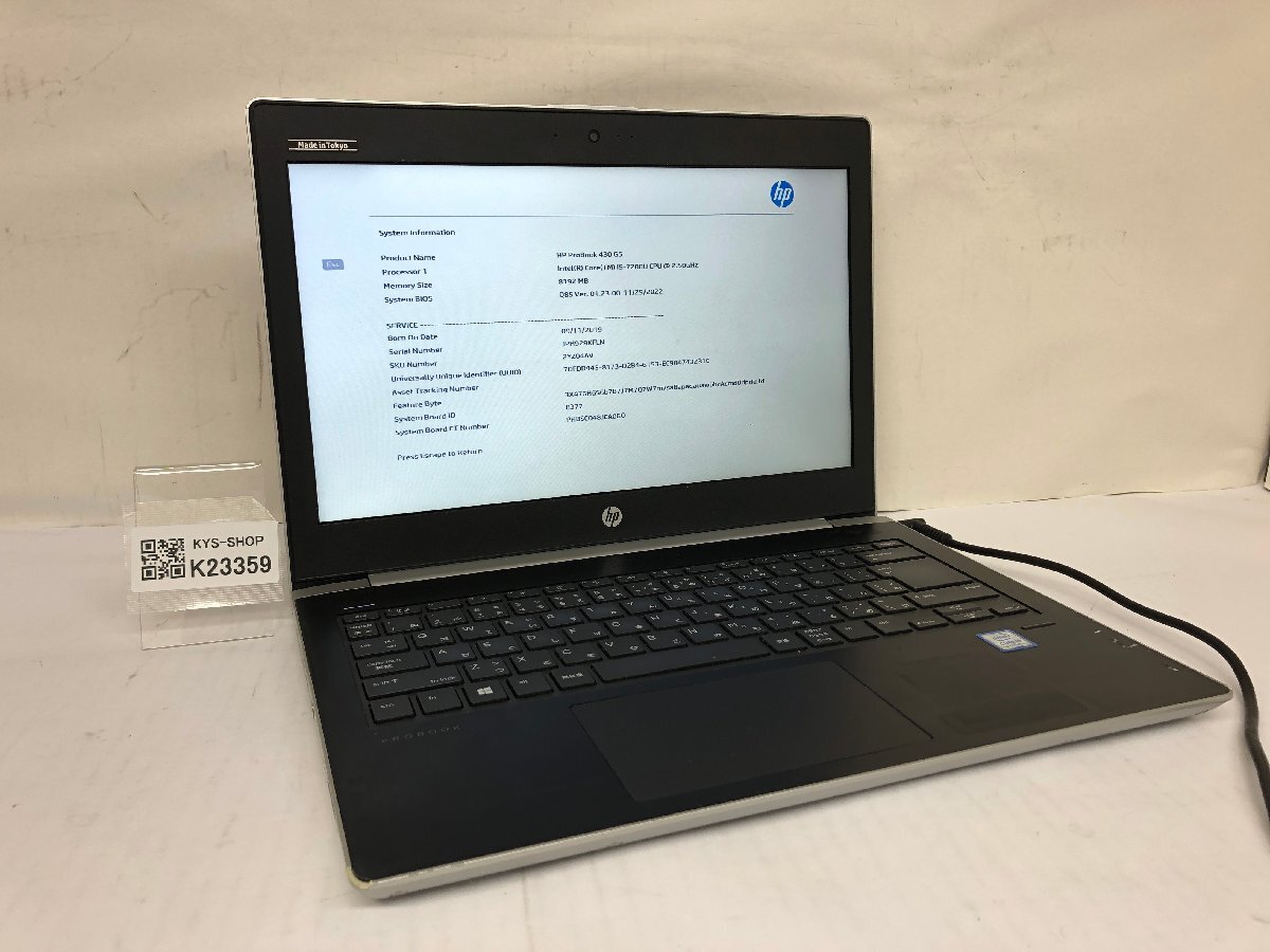ジャンク/ HP HP ProBook 430 G5 Intel Core i5-7200U メモリ8.19GB ストレージ無し 【K23359】