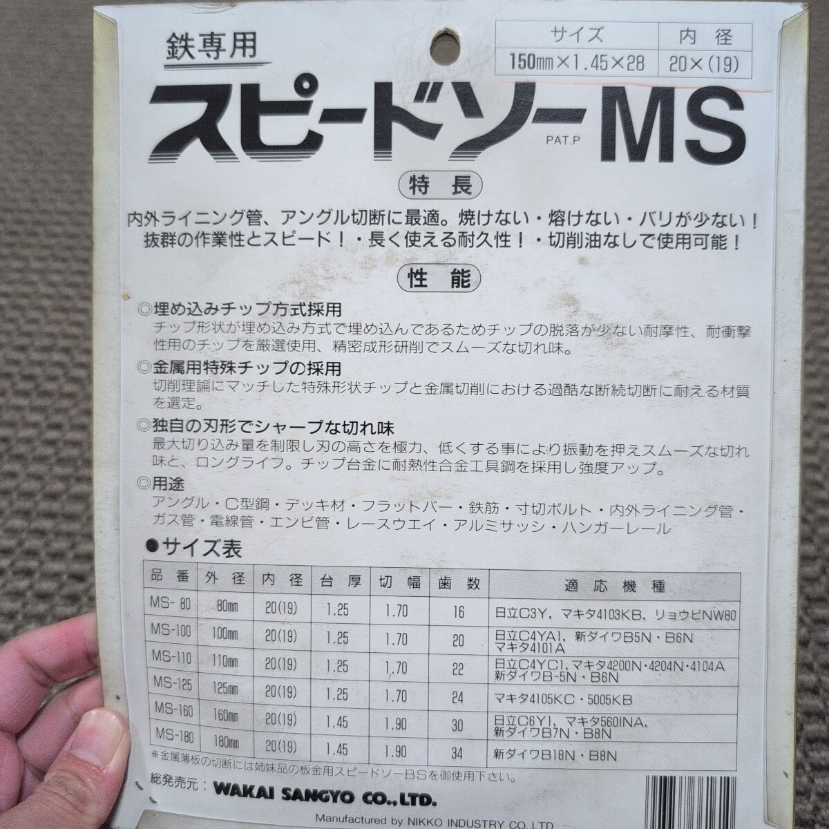 ジャンク品/長期保管品/WAKAI/MS-150/スピードソーMS/鉄専用/外径150mm厚み1.45mm/刃数28P/内径20(19)mm