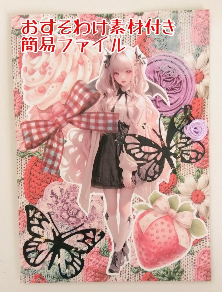 ・簡易ファイルはマグネットの留め具付きでバラを装飾しました。サイズは約18×13㎝。大きさはばらつきがあります。素材の保管ファイルとしてお使い下さい。反対側はデコレーションしてないのでご自身で楽しんで下さい(*´∀`)
