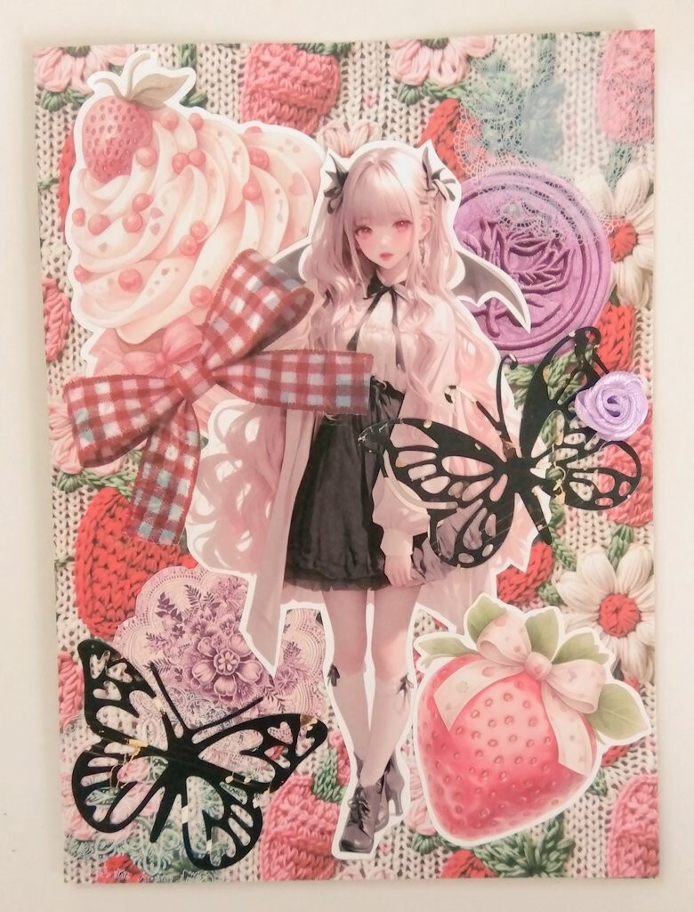 ・使いきれないコラージュ素材のおすそわけ+デザインペーパーで作った簡易ファイルです。紙もの、シール、ステッカーなど75点入ってます。(数え間違いを防ぐ為に+5点程入れてます)画像は一例です。福袋的にお楽しみ下さい(*^-^)海外製品もありますので造りが甘い所もあります。