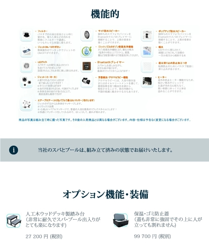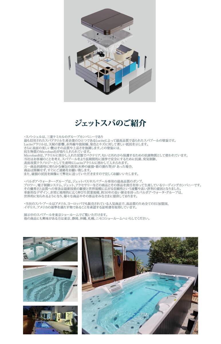当社のスパ・プールはアメリカ、ヨーロッパでも販売されている人気商品で、高品質のため全てのEU加盟国、