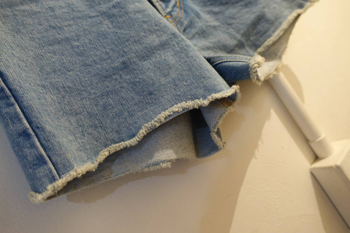 サイズはXS かるく使用で美品です。もともと古着の様な加工です。ウエスト平置きで31.5 股下8 股上29 裾幅28 よろしくお願いします!