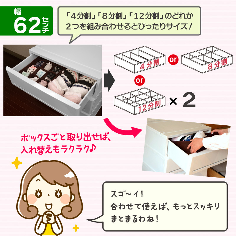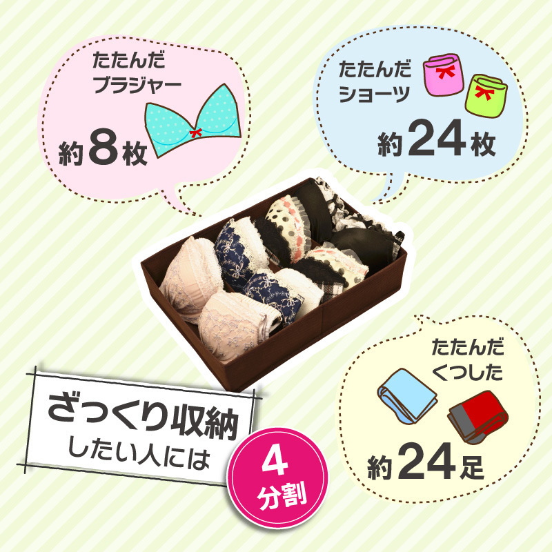 【収納目安】靴下:約24足、ショーツ:約24枚、ブラジャー:約8枚