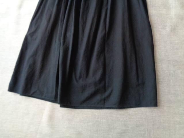 ややハイウエストの切り替えの上下で生地が違う2種の生地を使っています。切り替え部分に細かなギャザーが入っていて、たっぷりの生地を使いスカート部分はふんわりです。