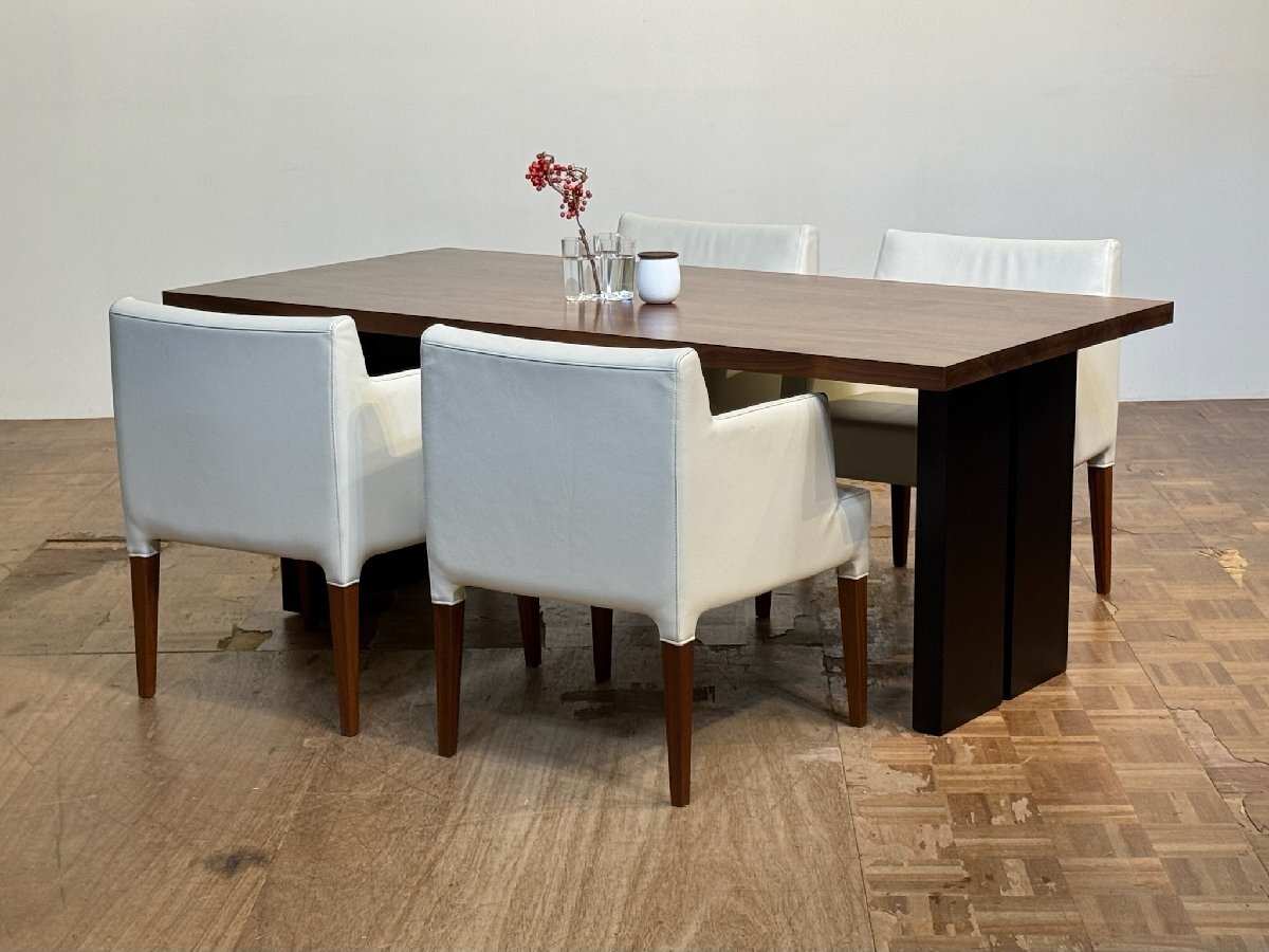 適度に硬質なクッション性と、トップからアーム、座面へと降っていくライン構成の美しい立ち姿から、ダイニングチェアとしてはもちろん、ラウンジシーティングとしても高い人気を誇る逸品です。