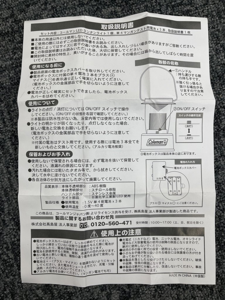 ◆【通電OK】Coleman LEDランタン TAC 09112 アウトドア 現状品 コンパクト キャンプ用品 OG204574