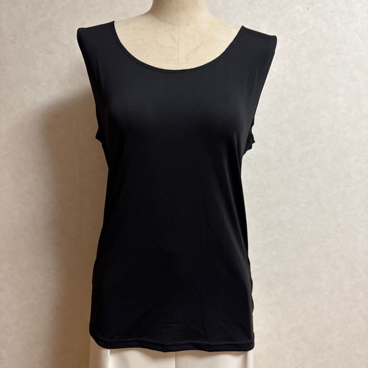 KN3083 *4L 大きいサイズ 接触冷感 カットソー ノースリーブ タンクトップ ブラック