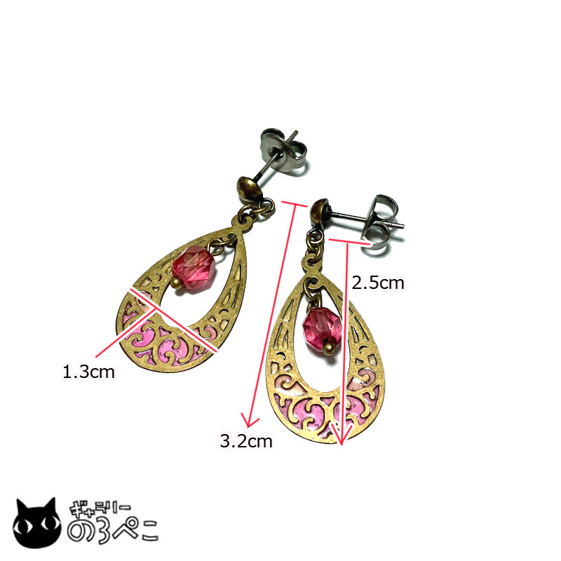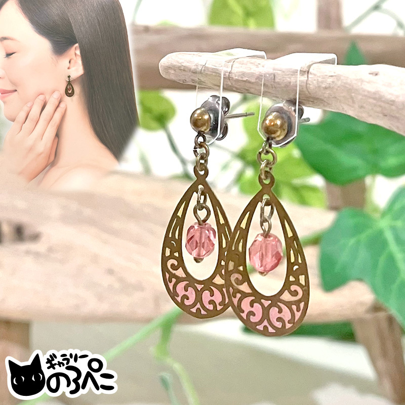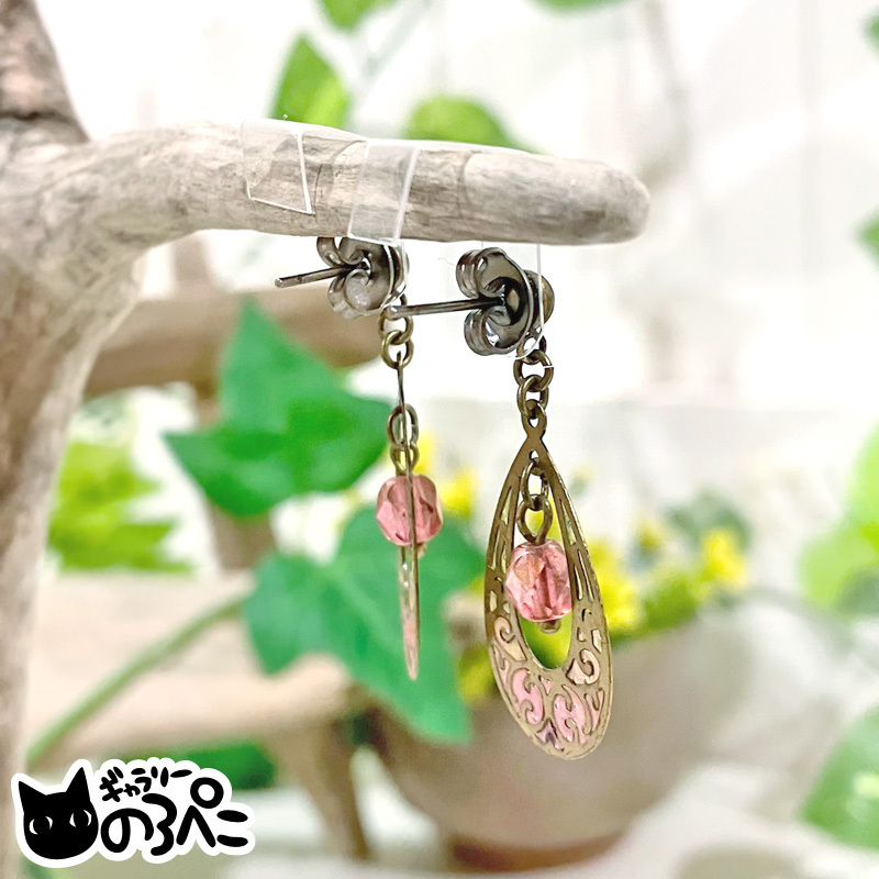 アンティーク調のデザインはシックで落ち着きある雰囲気。その中で、薄い透かしパーツがひらりと揺れる感じがさりげなく可愛らしいです。
