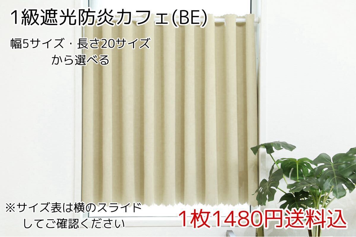★幅5サイズ・長さ20サイズから選べる★1級遮光防炎カフェカーテン(BE)g