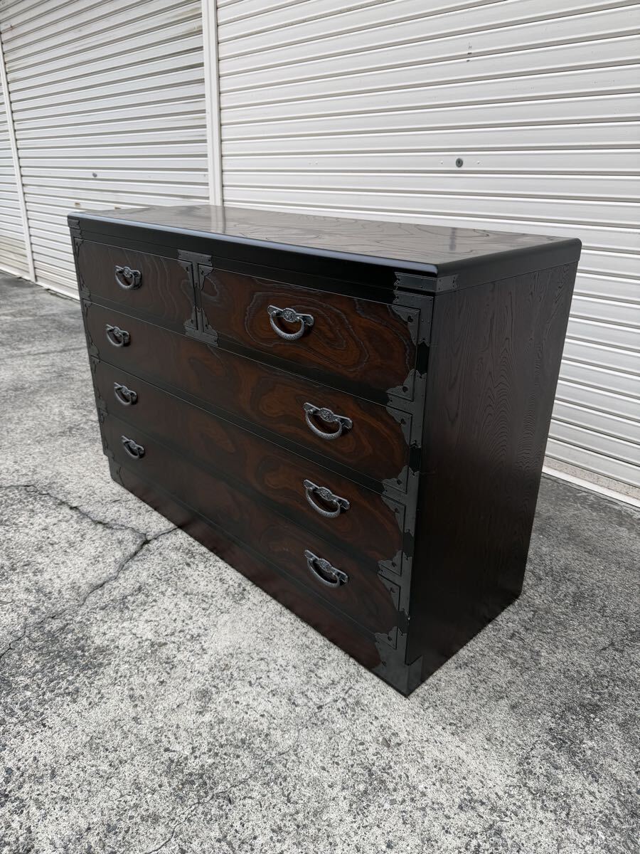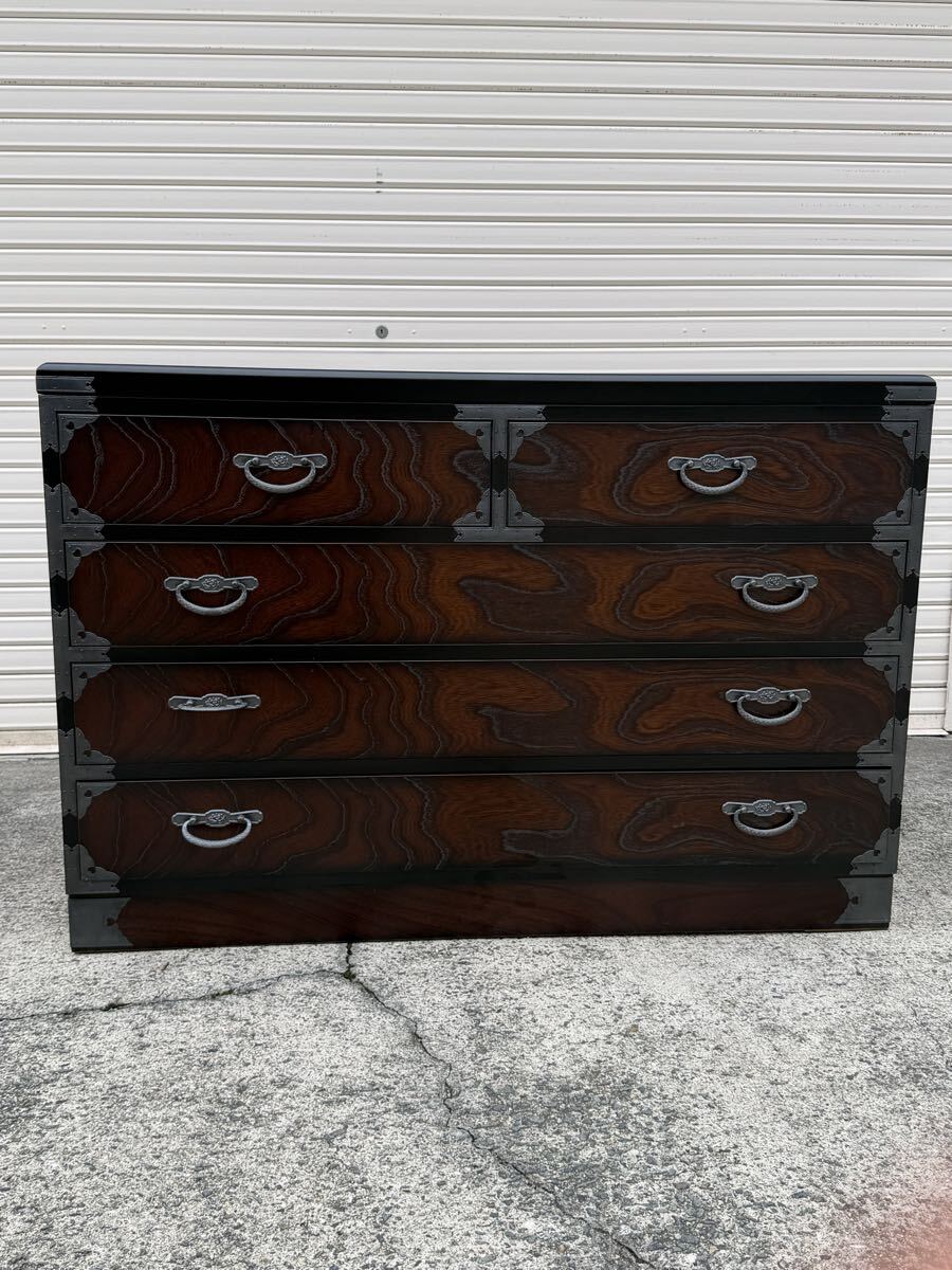 シンプルながら日本の良き時代を思わせるフォルムと、力強い杢目が重厚感ある整理箪笥。