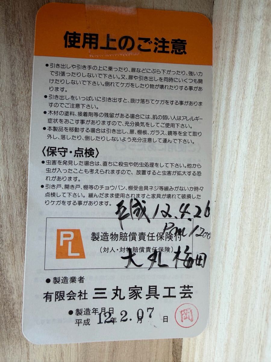 1950(昭和25)年創業。匠の技術を生かした現代風の民芸家具、【三丸家具工芸】の整理箪笥になります。