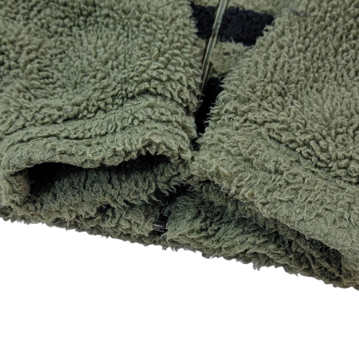 全面にボア素材を採用し、見た目にも着心地も抜群の温かさとソフトな肌触りを実現。カーキとブラックのコントラストが効いたデザインは、ストリートやカジュアルスタイルに絶大なインパクトを与えます。