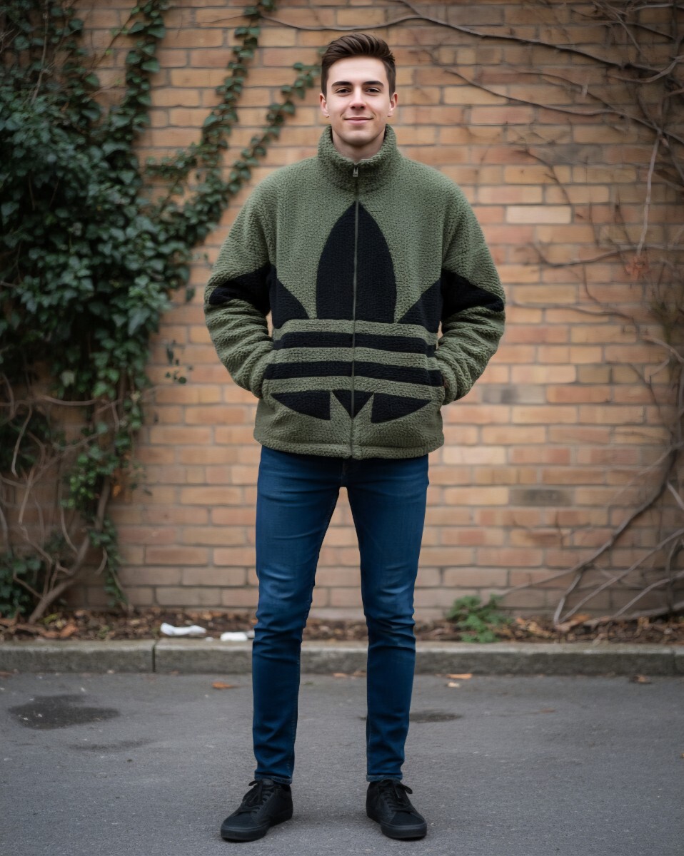 大胆なビッグトレフォイルロゴが目を引く、アディダスオリジナルのシェルパジャケットです。