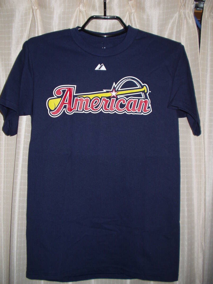 2006年ア・リーグMVPのモーノー選手、2009年にセントルイスで行われたオールスターゲームのTシャツです。色:ネイビー、マジェスティック社製、サイズ:S(USサイズのSです。身幅約45cm、着丈約72cm)、新品未使用タグ付きです。