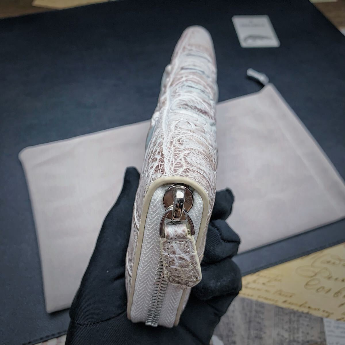 ・天然素材のクロコダイル革を使用しデザインが異なり一点物になる為、全て実物撮影しており、写真が実際にお届けする商品です。
