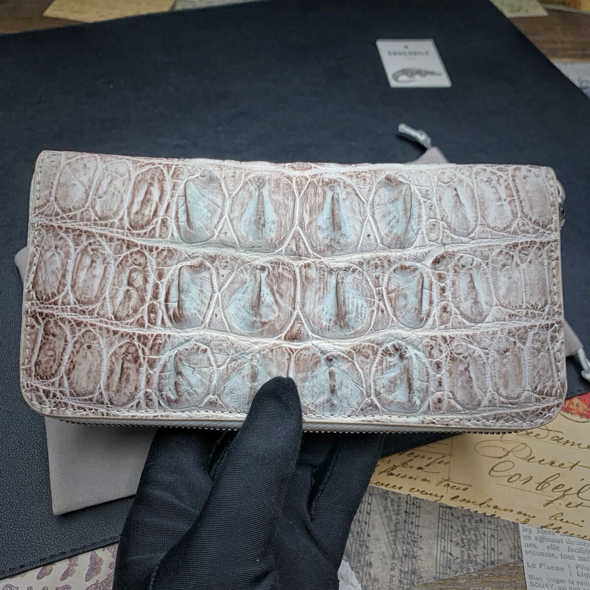 ・クロコダイルと呼ばれている品種のワニ革は人気が高く、独特の模様と凹凸が魅力で、高級ブランド品を中心にクロコダイルが多く使われています。今回はワニ革の代表格である『シャムクロコダイル』のセンターカット背中革のラウンドファスナー財布を出品します。