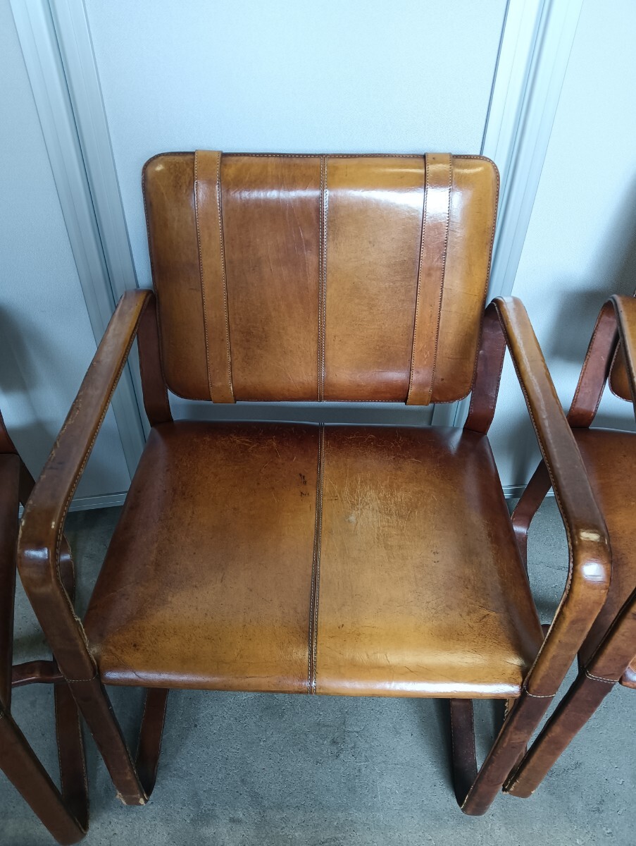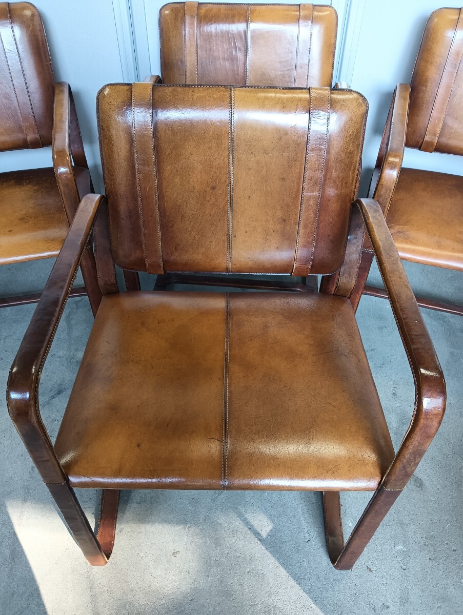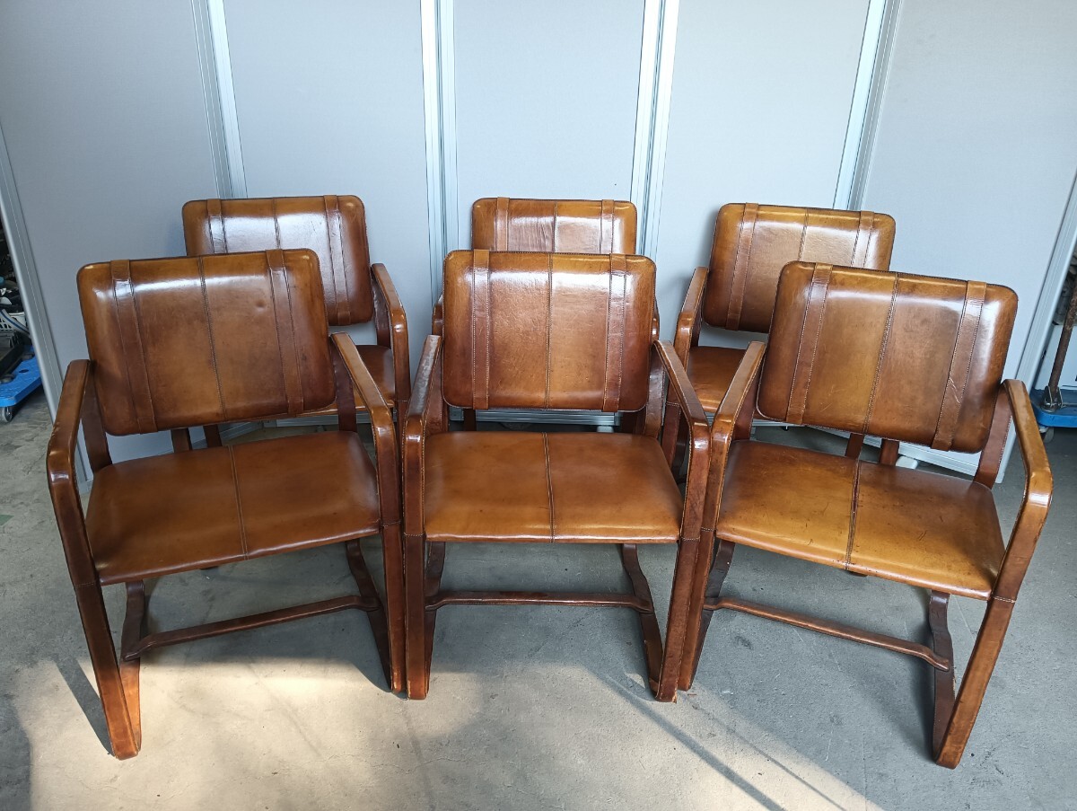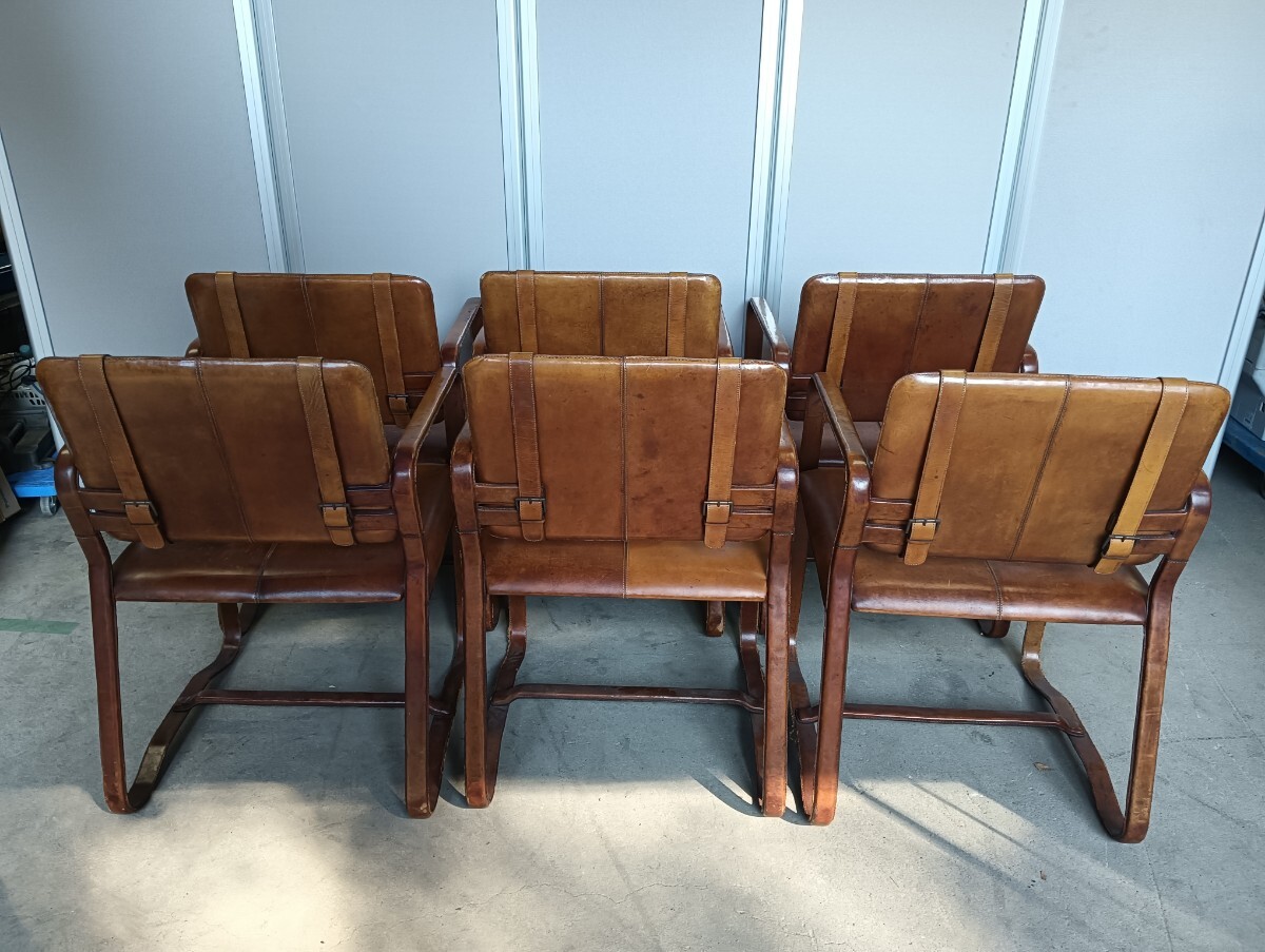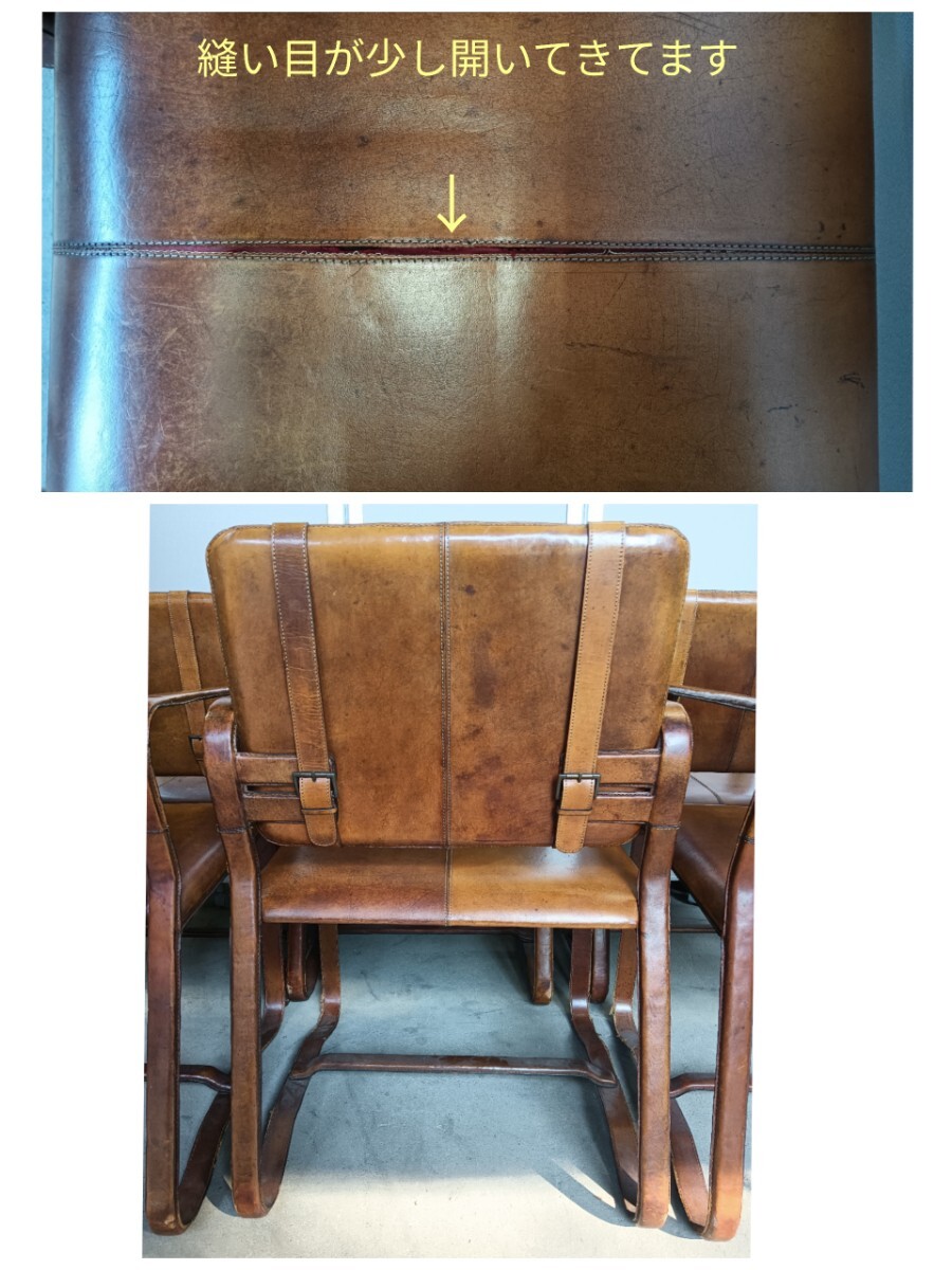 商品名 :【※引き取り限定】バックルレザーチェア/ アームチェア/ ダイニングチェア/ 椅子/革/ イス/6脚セット/アンティーク/イタリア製
