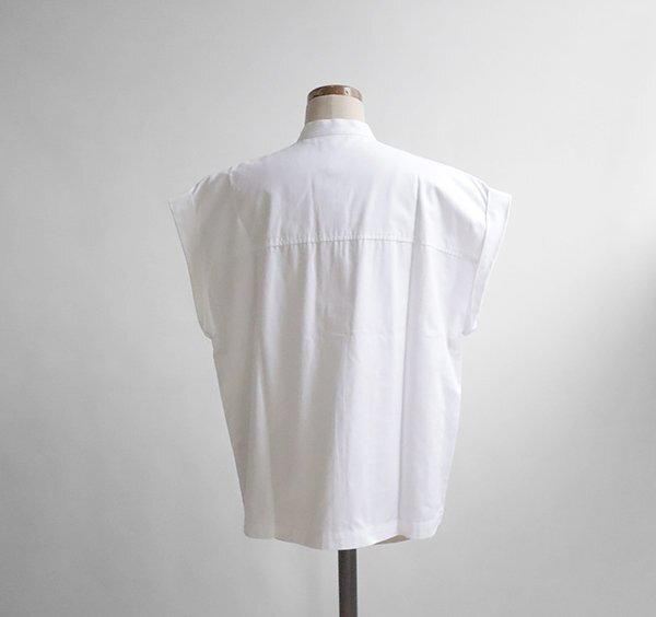 ☆極美品 RhodolirioN ◆ コットンシャンブレー フリルシャツ 白 サイズ1 バンドカラー ノースリーブ ブラウス ロドリリオン ◆ES22