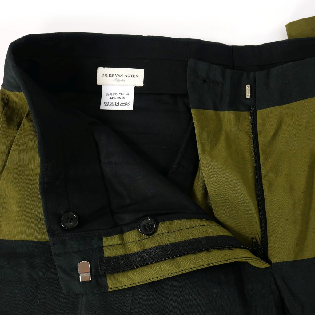 ドリスヴァンノッテン DRIES VAN NOTEN テーパードパンツ ボーダー センタープレス サイズ42 カーキ ネイビー レディース