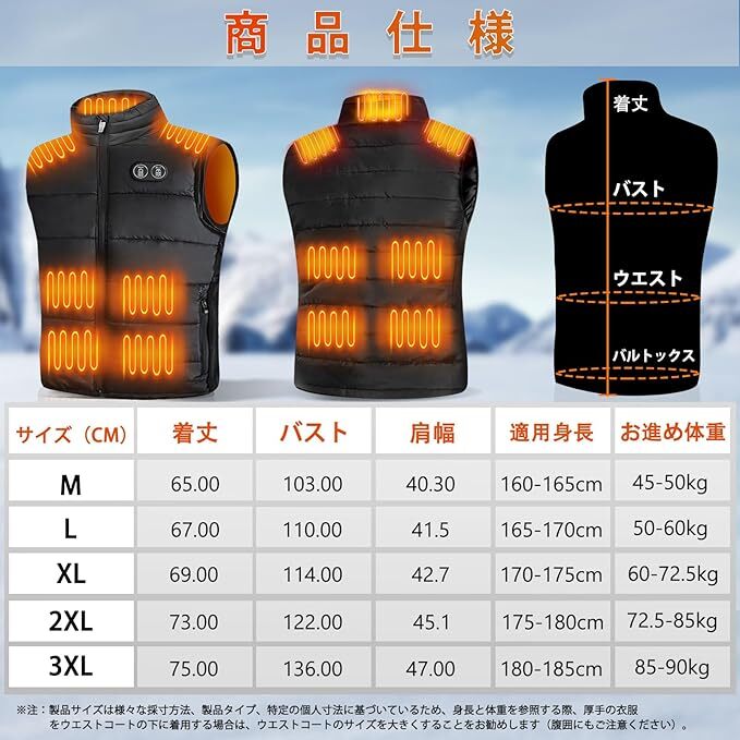 ・付属品:ベスト本体/30000mAhバッテリー/USBケーブル/日本語取扱説明書