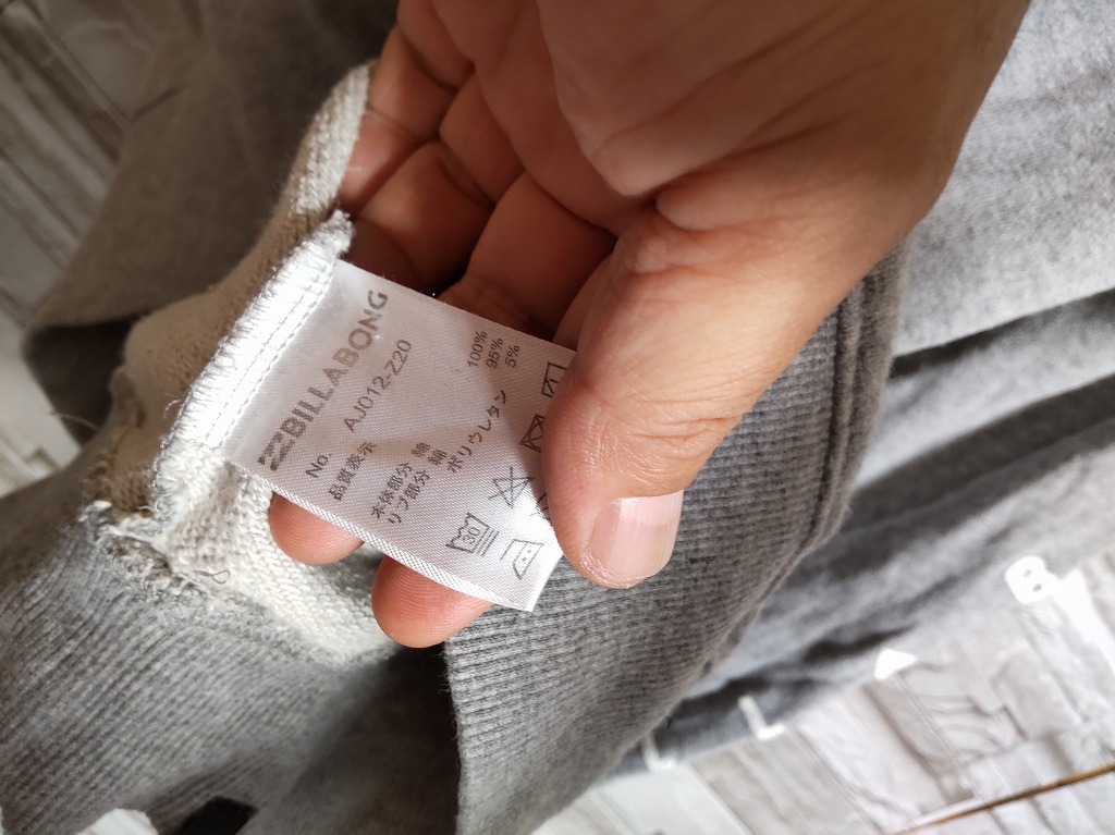 men's J546 BILLABONG ビラボン ロゴ 刺繍 スウェット トレーナー XS グレー