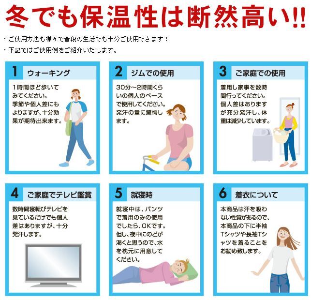 『保温力が抜群なので着て10分、じんわりと汗が出てくる、冬でも無理なくダイエットができる!』