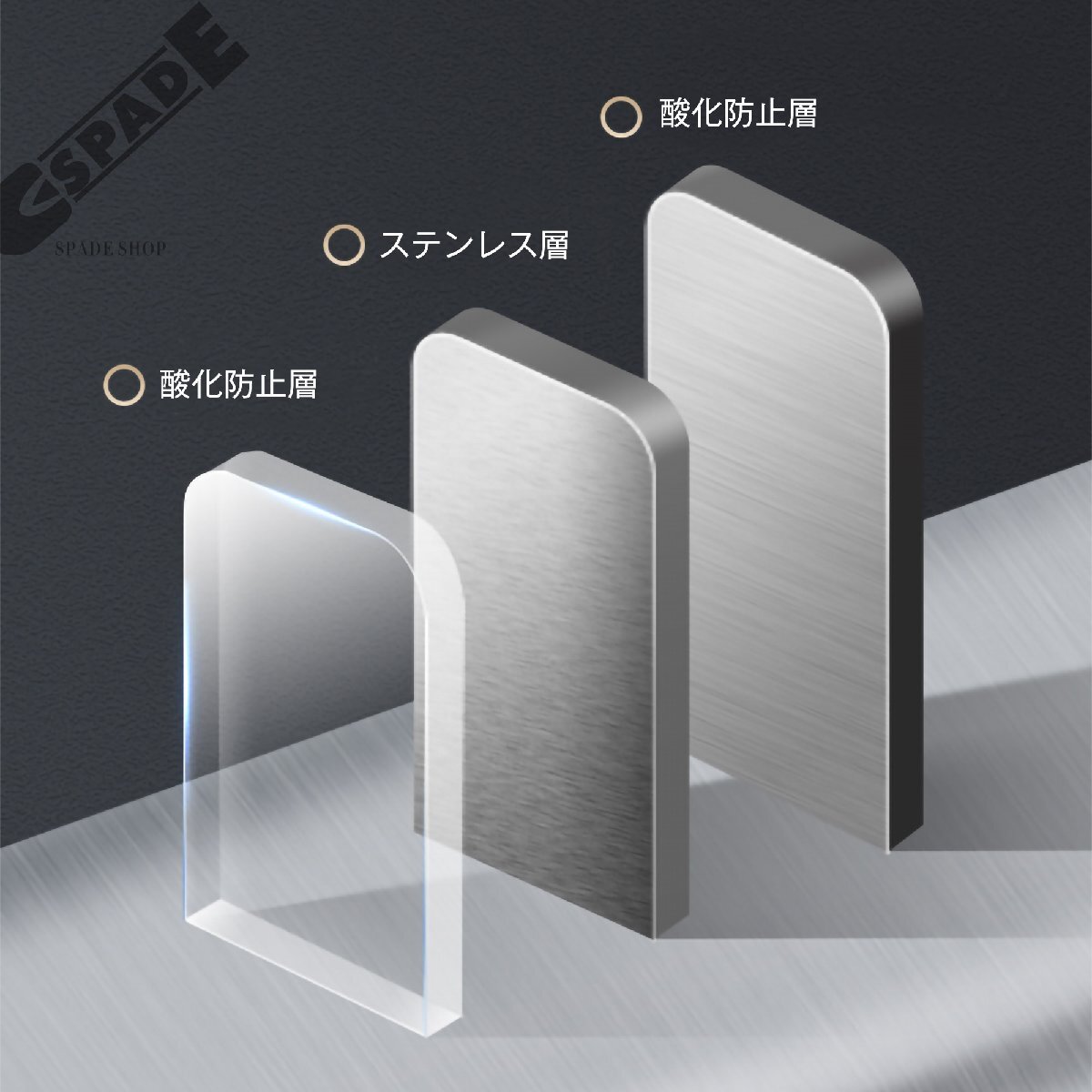 • 1. 【キズや摩擦、汚れに強いステンレススチール素材採用】水や汚れに強く、耐久性も優れて、お手入れも簡単です。汚れた時もサッと簡単に拭けます。美しいヘアライン仕上げを施しました。