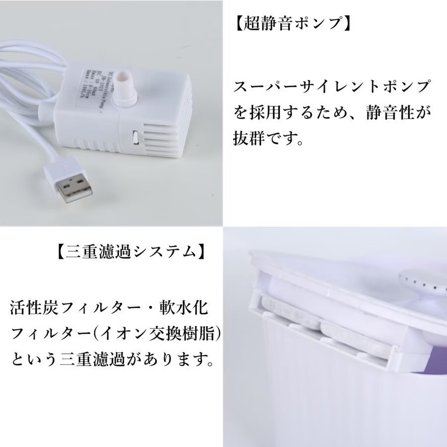 <!-- description -->【3L大容量&空焚き防止】: 3L大容量で、猫や小型犬に適用します。水量が不十分な場合、ポンプは自動的に動作を停止し使い安心。【4層フィルタ濾過システム】: 4層の濾過システムにより、髪の毛や堆積物、屑などポンプや水タンクに入るのを防ぎ、汚れた水と嫌な匂いを取<!-- /description --><br><br><DIV>【3L大容量&空焚き防止】: 3L大容量で、猫や小型犬に適用します。水量が不十分な場合、ポンプは自動的に動作を停止し使い安心。</DIV><DIV><BR></DIV><DIV>【4層フィルタ濾過システム】: 4層の濾過システムにより、髪の毛や堆積物、屑などポンプや水タンクに入るのを防ぎ、汚れた水と嫌な匂いを取り除いて水質を改善します。</DIV><DIV>【超静音ポンプ&省エネ】: 1.5Wの低消費電力で省エネ効果があり、また、超静音ポンプが実現され、モーターの音が50dB以下になります。</DIV><DIV><BR></DIV><DIV>【三つ出水モード&ライト付き】:滝モード、泡立ちモードと噴水モードと3つの水の流れモードを設計されて、ペットの好みに合わせてご自由に設置することができます。半透明なデザインで、一目で水位を確認できるし、ポンプもLEDライトが付くことにより、夜に残水量が確認しやすくなります。</DIV><DIV><BR></DIV><DIV><DIV><DIV>◆注意事項:</DIV><DIV><BR></DIV><DIV>①商品写真はできる限り実物の色に近づけるよう努めておりますがご使用のPCモニター設定や部屋の照明により多少、色の変化が感じられる場合がございます。</DIV><DIV><BR></DIV><DIV>②輸入品で日本語の説明がない場合があり、サポートもございませんので商品知識のある方のみご入札下さい。</DIV><DIV><BR></DIV><DIV>③商品によってはどうしても若干の誤差が発生してしまいます。 1~2cmの誤差は予めご了承ください。</DIV><DIV><BR></DIV><DIV>④海外よりお取り寄せ商品はでございますので、不良品以外の返品・交換を承っておりません。何卒ご了承ください。</DIV><DIV><BR></DIV><DIV>⑤入札の取り消しや、落札後のキャンセルやサイズ、色変更等はお断りしております。イメージ違い等些細な事を気にされる神経質な方のクレーム、返品はお受けしておりませんので、そのような方の入札はご遠慮下さいませ。</DIV><DIV><BR></DIV><DIV>⑥ご入金のお知らせをご確認致しましたら、3-7営業日以内に発送手配いたします。</DIV><DIV><BR></DIV><DIV>⑦落札後7日以内ご入金お願いいたします。無理の場合事前に入金予定日をお知らせくださいませ。連絡がないまま5日以内ご入金いただけない場合、落札者様都合でお取引をキャンセルさせていただきます。予めご了承くださいませ。</DIV><DIV>(注意:ご了承の上でご入札・落札をお願いいたします。)</DIV></DIV><DIV><BR></DIV></DIV><DIV><BR></DIV>