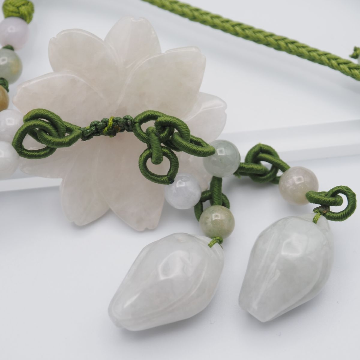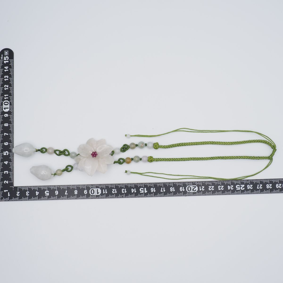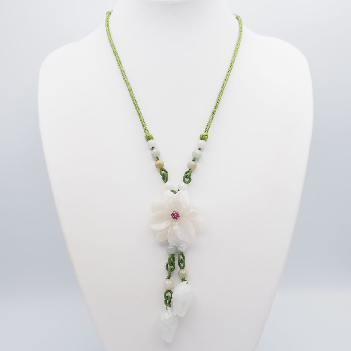 H549 翡翠? ヒスイ? ネックレス 花彫刻 紐 デザイン アンティーク