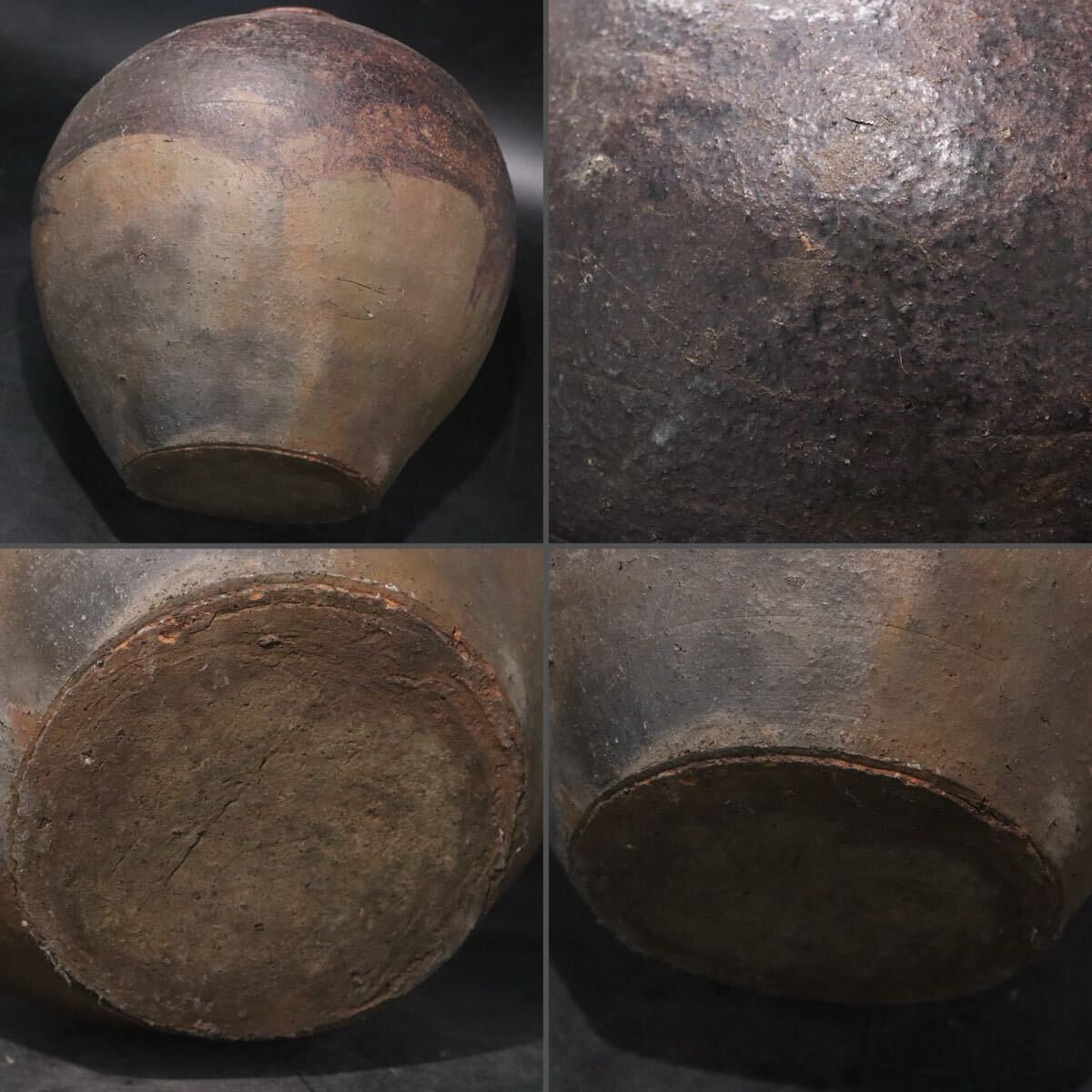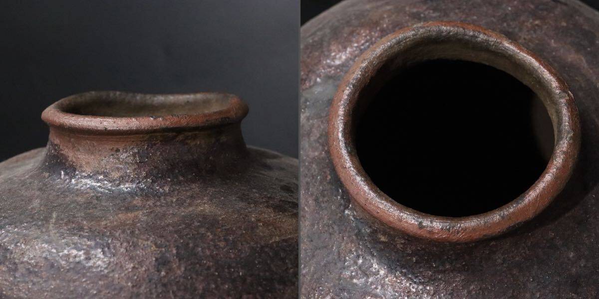 | 時代 古丹波 鉄釉 大壺 高さ約39cm / 花器 花瓶 壺 煎茶道具 検索: 須恵器 古備前 南蛮 .B1315 |