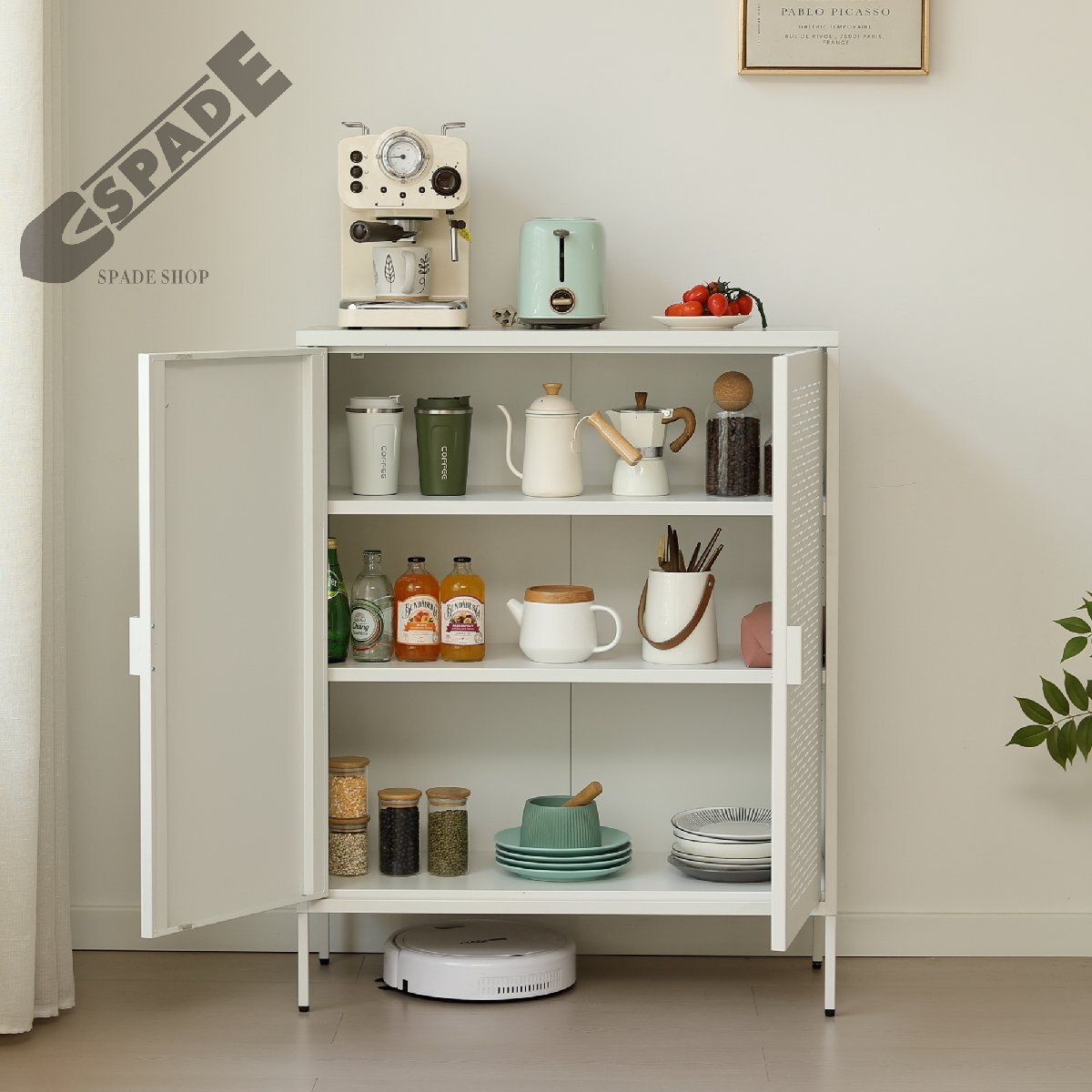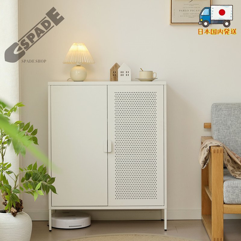 【国内発送】キャビネット スチール サイドボード ドア付き 両開き 可動棚付き メタル コンパクト 高め 金属製 おしゃれ リビング モダン