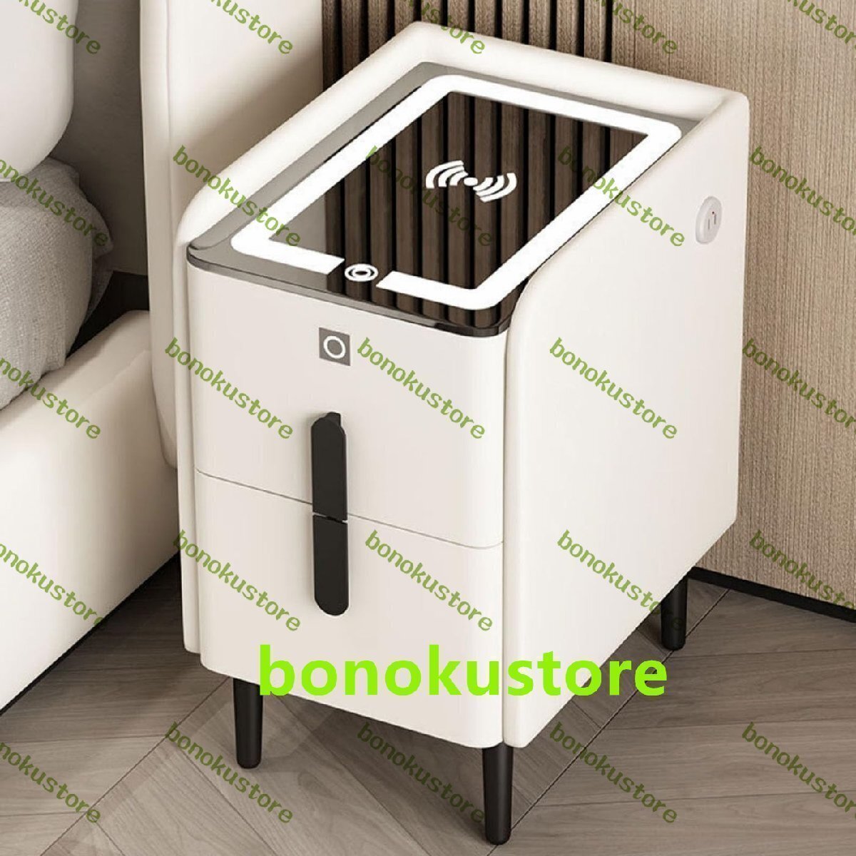 スマートテーブル ベッドサイドテーブル 充電ステーション付きナイトテーブル ベッドサイド 収納 スリム サイドテーブル モダン 寝室 リビング 電話台 (Color : White Size : 30x40x50cm)
