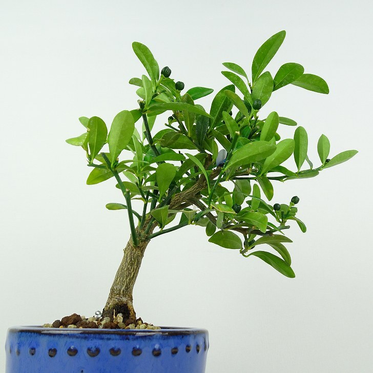 | ■植物ですので撮影時期や季節によって剪定などの手入れにより写真から変化がございます。撮影日をご確認のうえ、ご注文ください。 ■翌年の実付きをよくするために1月末~2月にかけて摘果しています。お届けの商品には金豆の実がない場合がございます。 【金豆盆栽】 開花時期は、夏6月~8月頃にトゲのある枝の脇に花芽が複数つき小さな白い五弁花を咲かせます。花後に小さな実が結実し、これが段々大きくなって秋~冬頃には橙色の実に熟します。暖地性の植物になりますので、寒さに弱く霜や乾風に当てないよう管理が必要です。 キンカンの矮小品種で茎に鋭い棘があります。 和名は金色の果実が豆のように小さいことから金豆と付けられました。 |