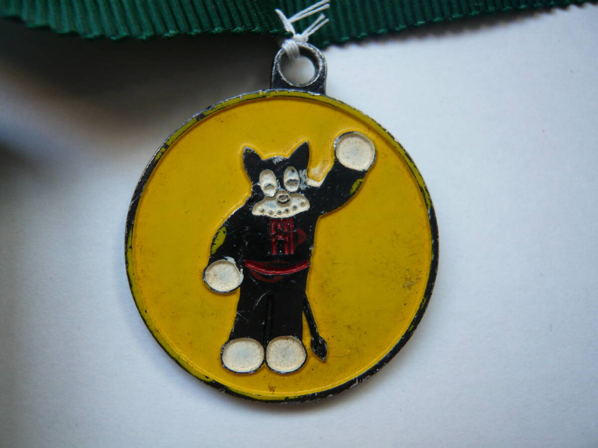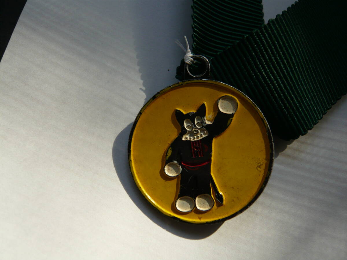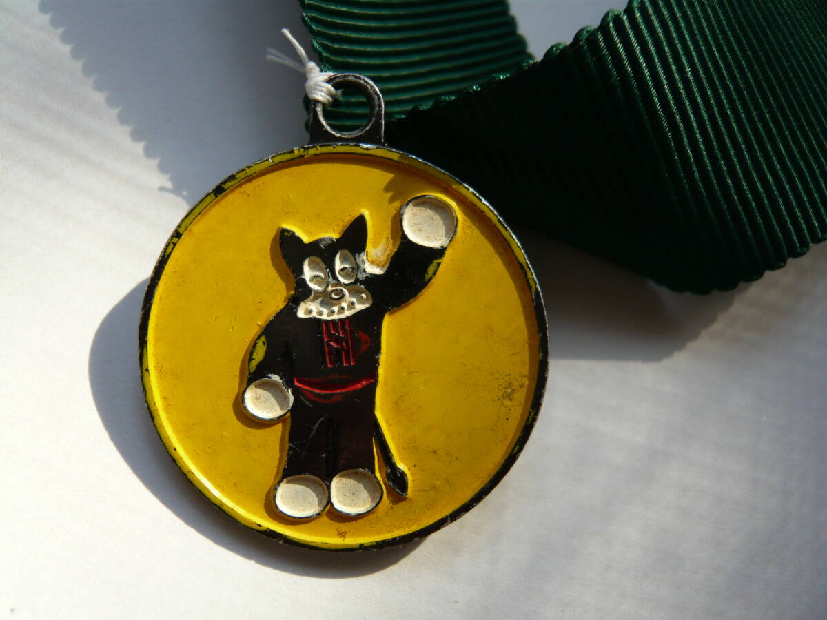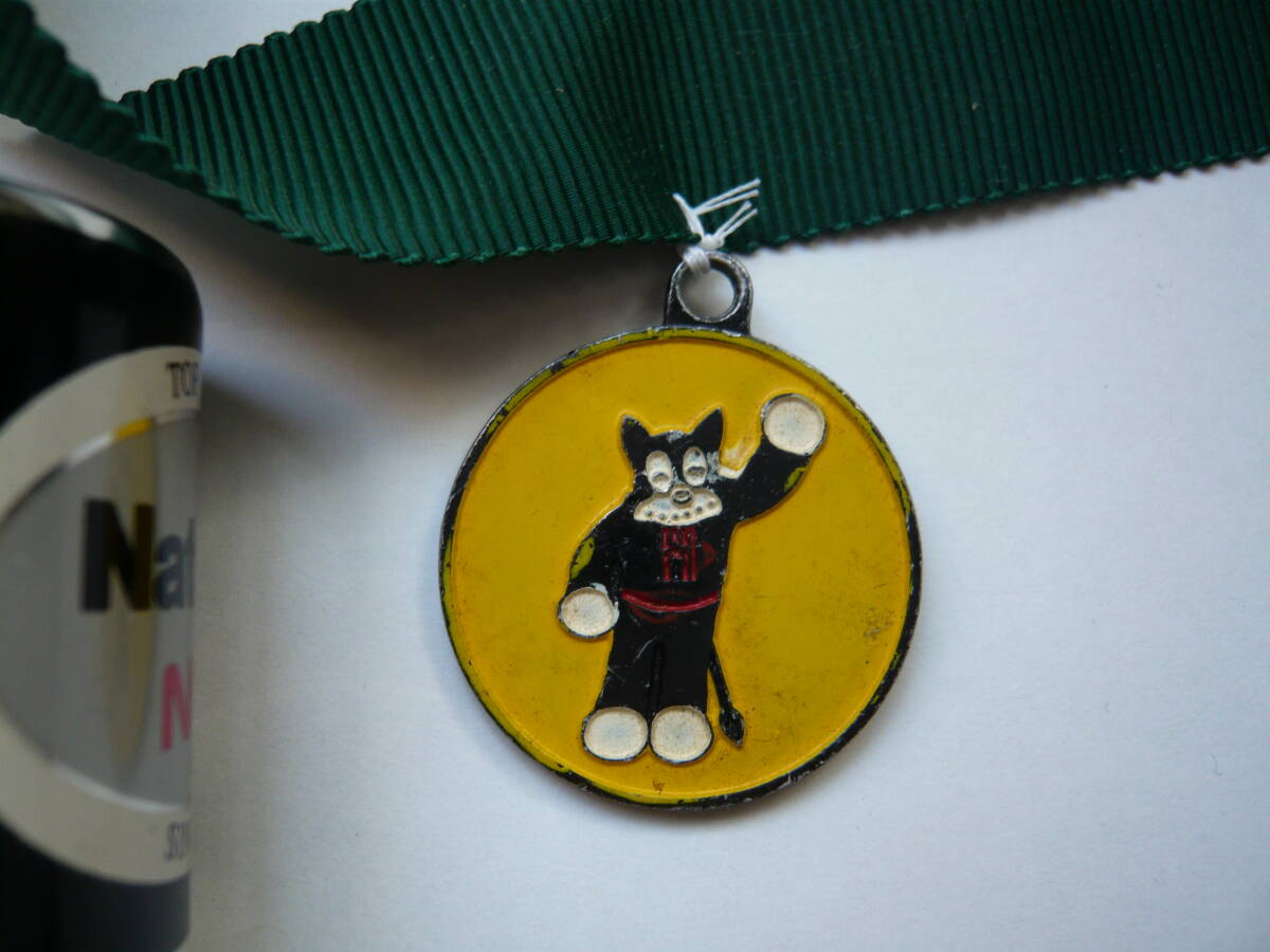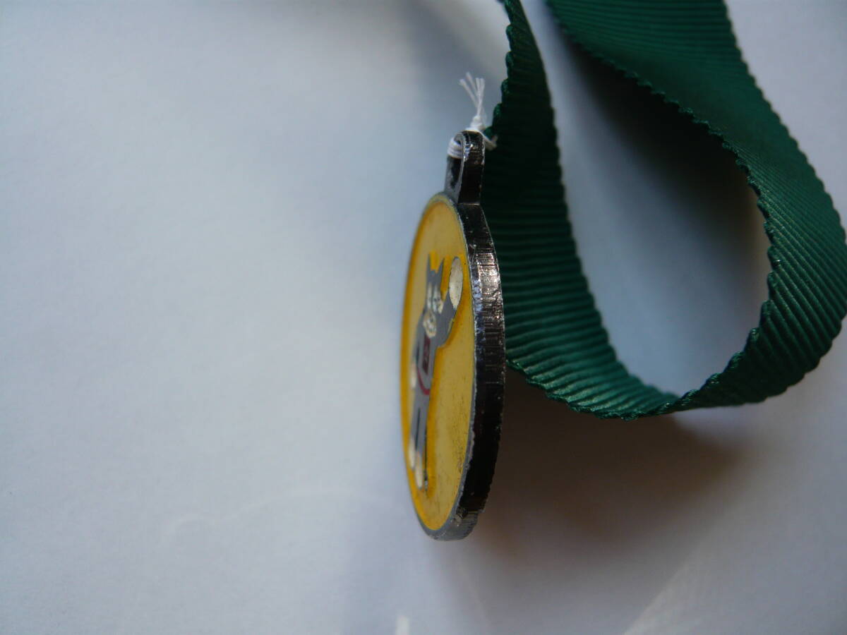 「のらくろ」のペンダントです。別に出品中の「のらくろ欅木製看板」の首に掛けて楽しんでいたものです。緑色のひもに取り付けた状態での出品です。必要が無ければ取り外してください。
