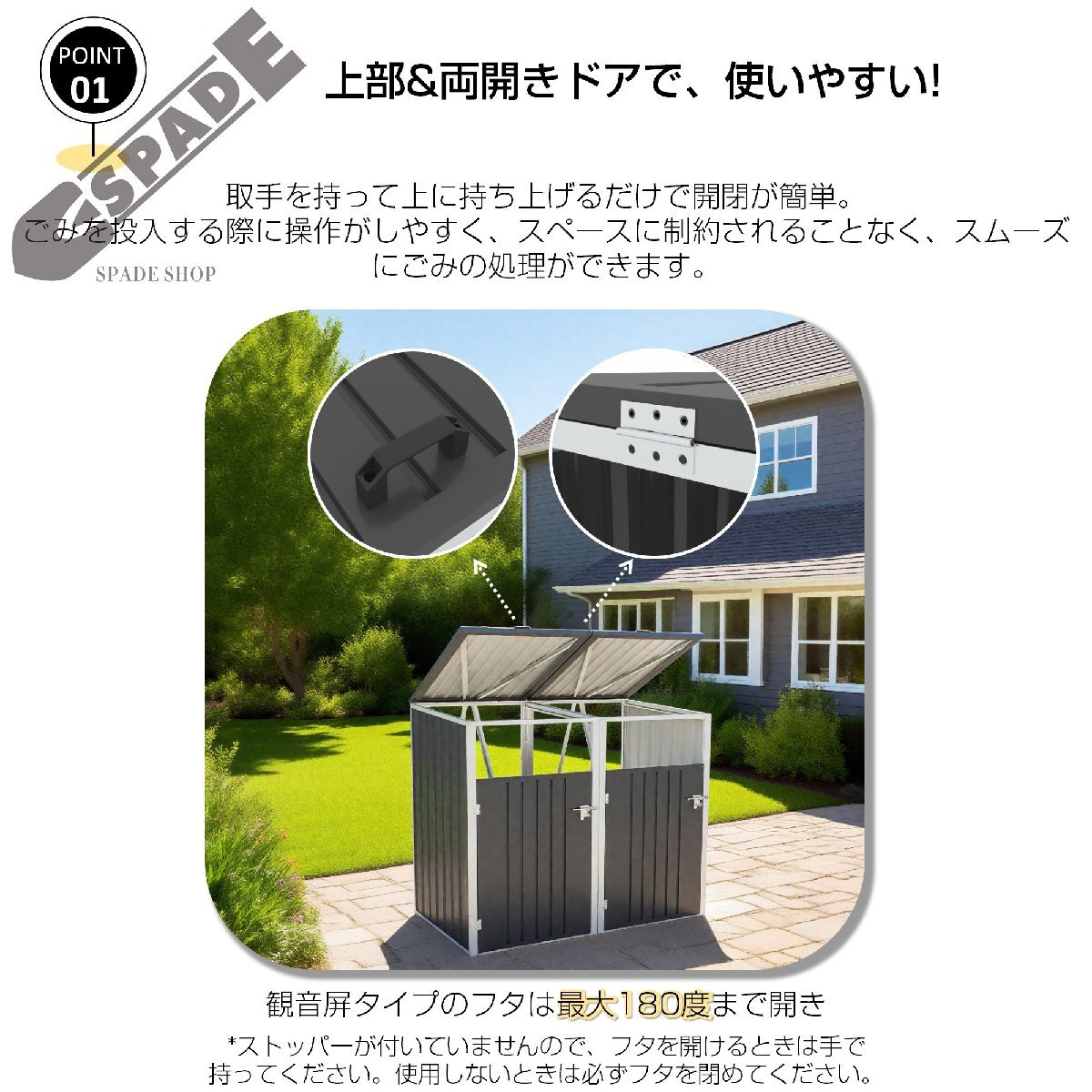 • 【施錠可能なので安心してゴミを保管】施錠が可能なので、不法投棄や動物の侵入をしっかりと防ぎ、ごみを清潔に保つことができます。※南京錠は付属しておりません。また、適切なごみの分別・保管をサポートし、地域のごみ出しマナーを守る上でも大変役に立ちます。