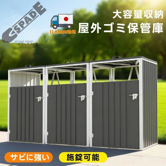 【国内発送】 【3分別】ゴミ箱 屋外収納庫 大容量 大型 屋外ごみ箱 屋外用ゴミ箱 ストッカー 外用 ゴミ箱 ゴミステーション ベランダ