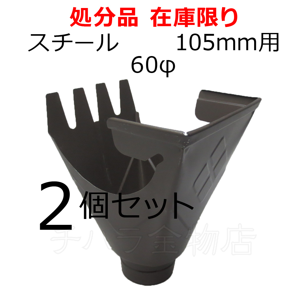 ヨド樋 スチール 角集水器 105mm用 60φ 2個セット 新茶 金属製雨樋 在庫処分品(汚れキズあり)