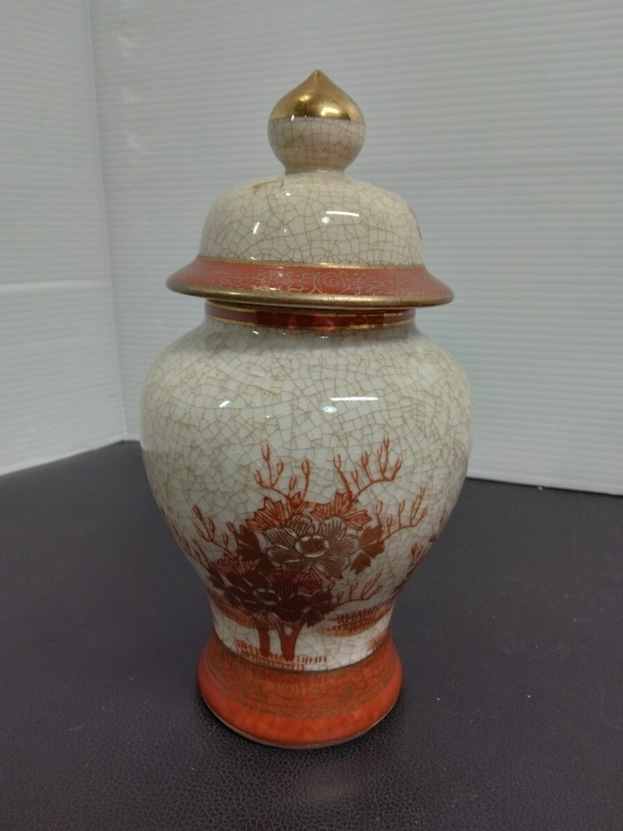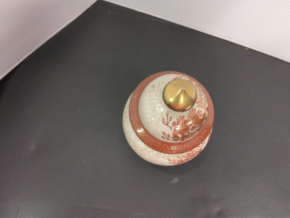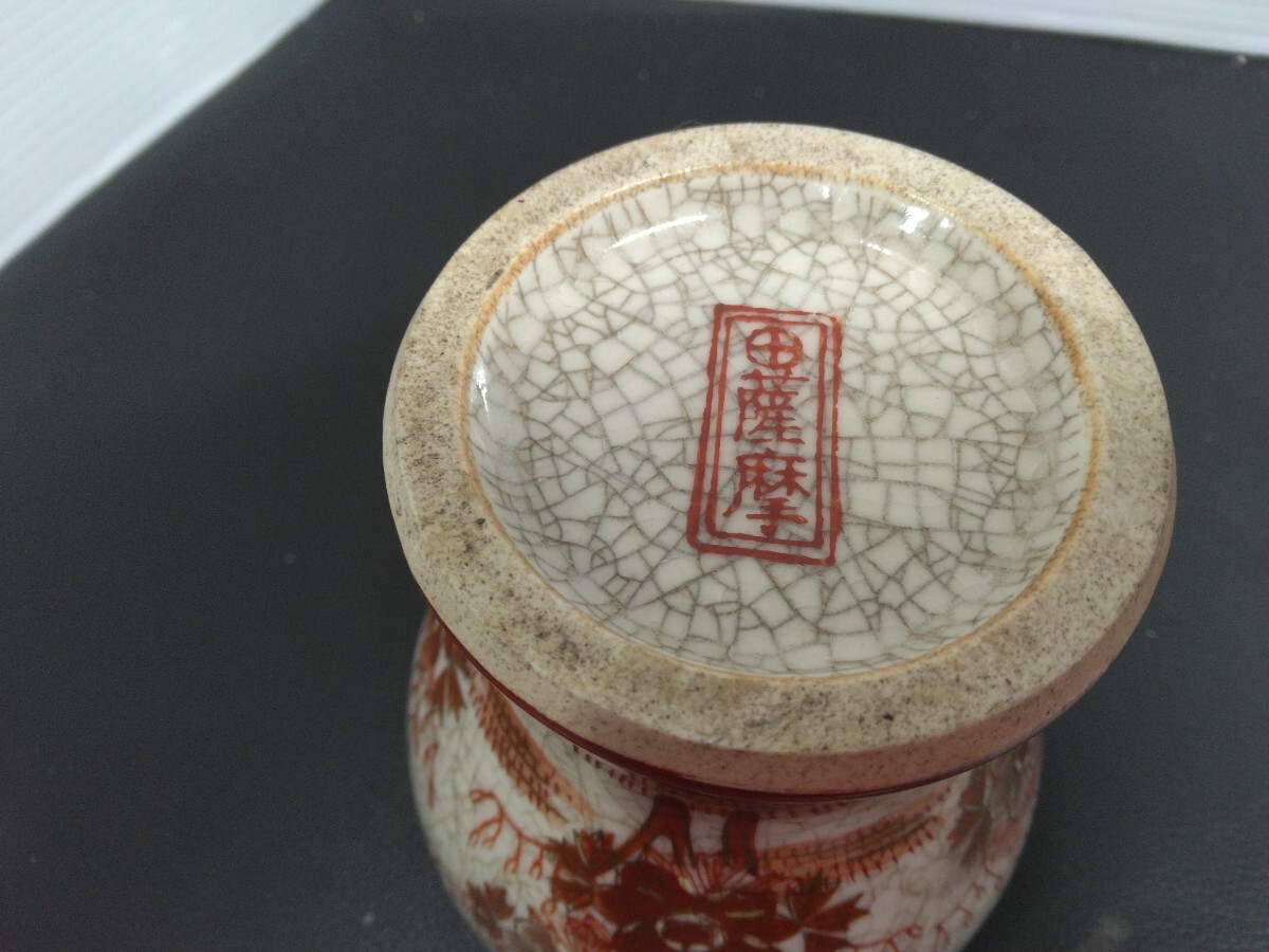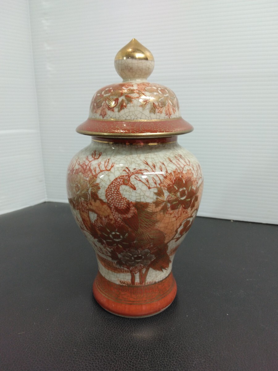 当時物 レトロ 薩摩焼 九十字壺 金継ぎ 赤絵 金彩 孔雀 牡丹 蓋付き 小瓶 花鳥図 陶器 ヴィンテージ 工芸品 美術品