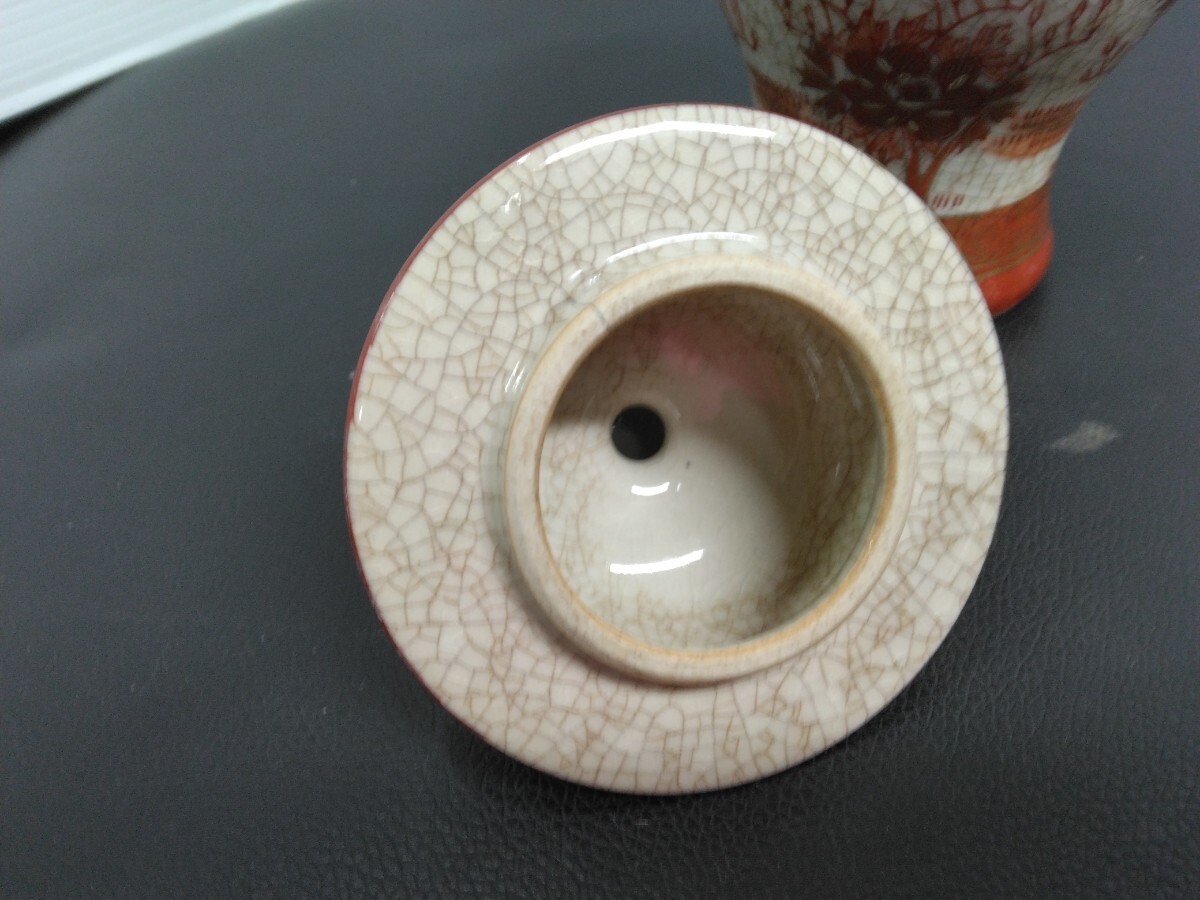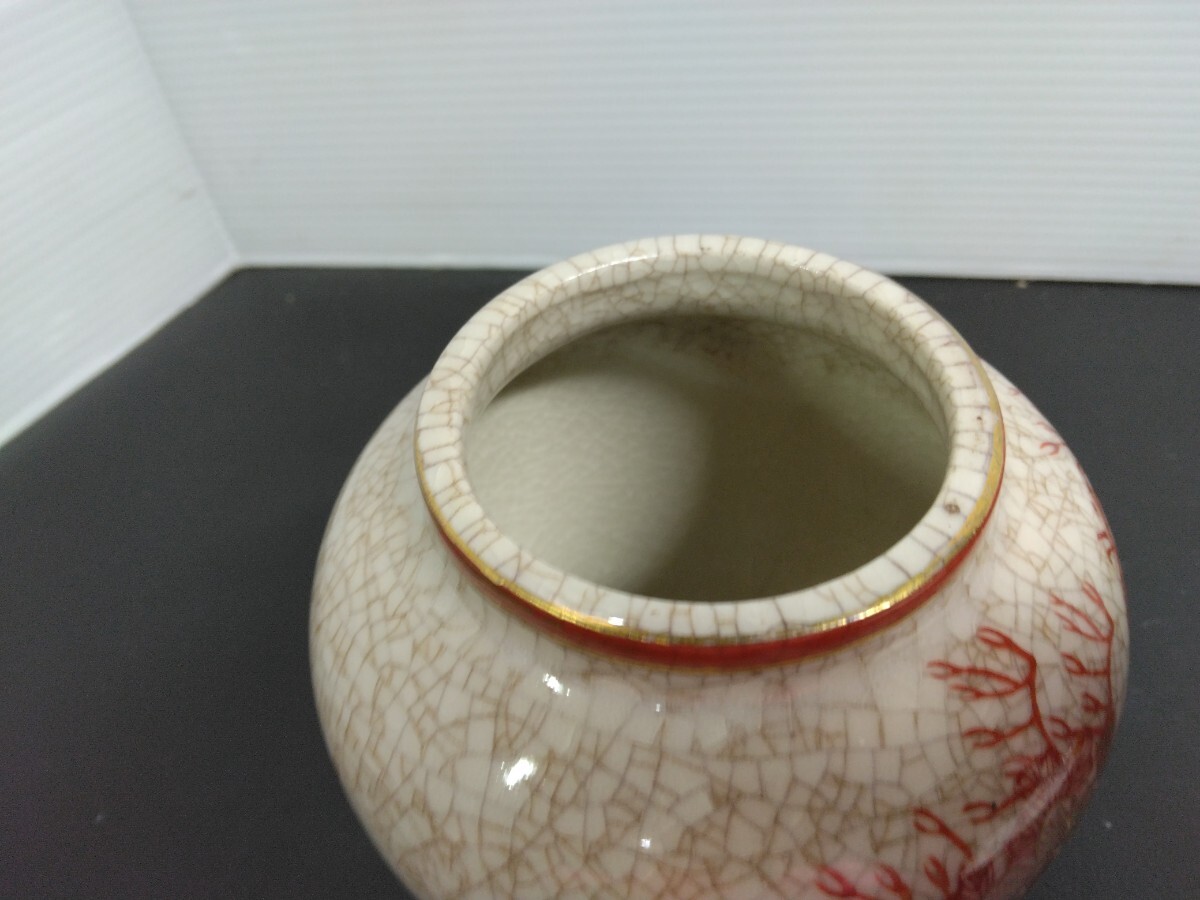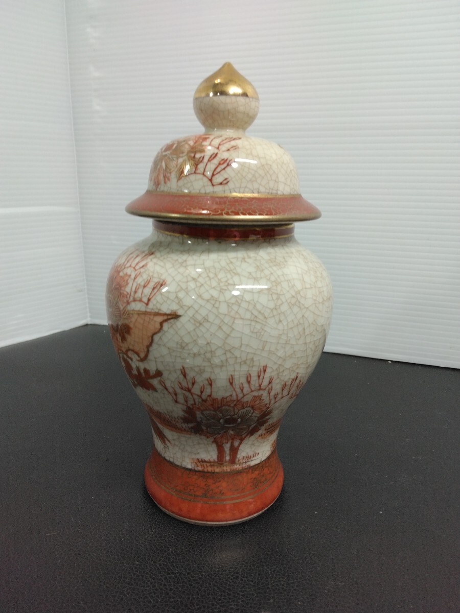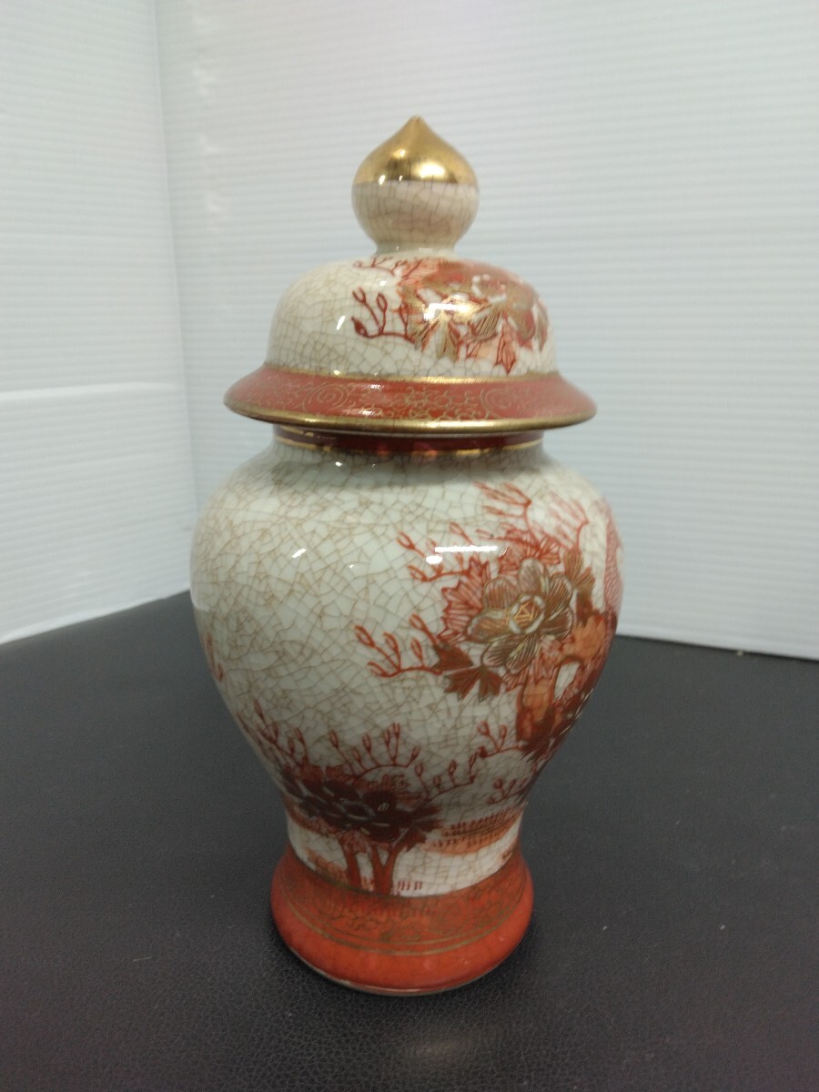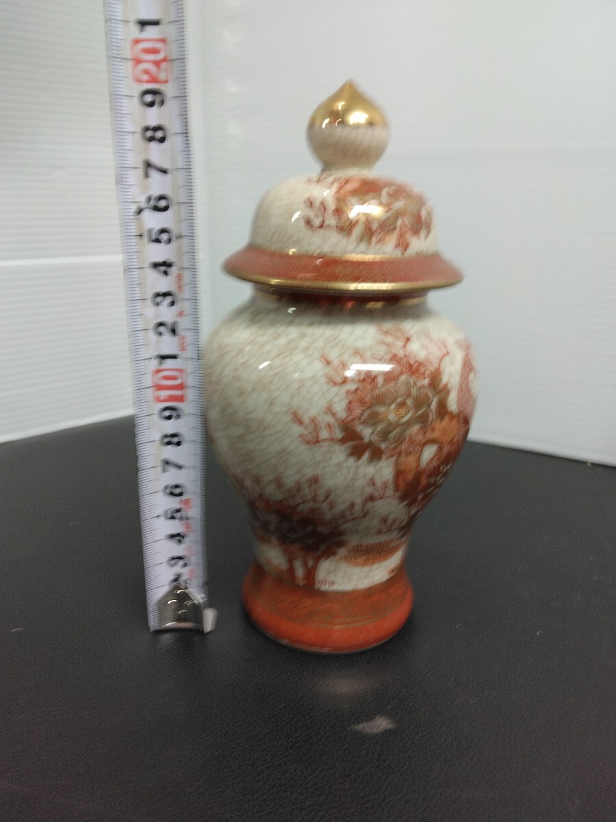 当時物 レトロ 薩摩焼 九十字壺 金継ぎ 赤絵 金彩 孔雀 牡丹 蓋付き 小瓶 花鳥図 陶器 ヴィンテージ 工芸品 美術品