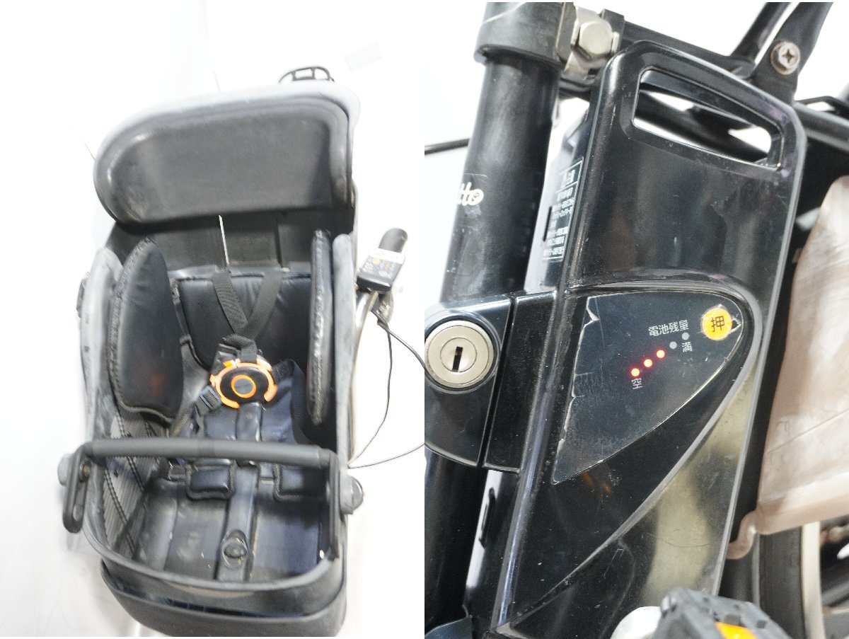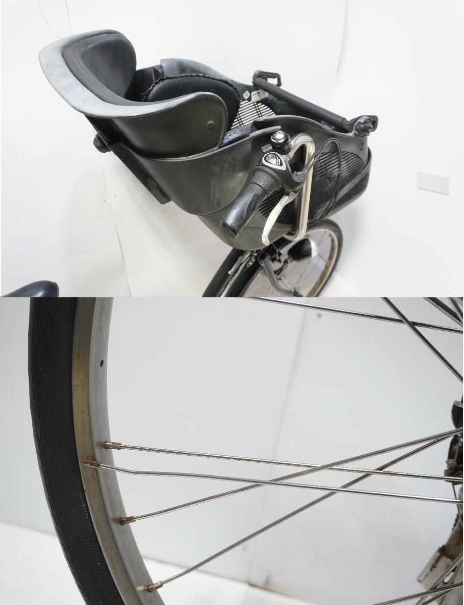 ■カテゴリー別のリンクはこちら■ →測定器・アマチュア無線 →工具・農業機械 →カメラ・映像機器 →オーディオ・楽器 →スポーツ・レジャー・自動車関連 →PC・周辺機器・ゲーム →ミシン・店舗用品・その他 ※便宜上、送料0円(送料無料)と表示されていますが、 実際の送料は無料ではなく、着払いになります。 落札後、住所確認致しましたら、送料のお見積りをお知らせいたします。 商品お受け取り時に配送業者にお支払いください。 ■商品説明■ ************************************************************************ ※サイズの実測は 測り方などが解らず素人寸法の為誤差があります。 ※芯から芯までのサイズを測っております。素人ですので、参考程度でお願いします。 ※予めご了承ください。 ※詳しいことはよくわかりませんので質問に答えられない場合がありますのでご理解ください。 ※当方知識が無く正確なカテゴリ、サイズが分かりません。 ※カテゴリ、カテゴリサイズにつきましては参考程度にお考え下さい。 ************************************************************************ ■ タイヤサイズ ■ 前:22X1 1/2(40-501) エアあり使用可能 後:26X1X1/2(40-590) エアあり使用可能 ■ 全体サイズ ■ 全長: 188㎝ 幅: 56㎝ 高さ: 115㎝ 梱包サイズ:198X66X125㎝ ■ 動作・状態等 ■ ブレーキ: 前→OK 後→OK シフト: 前→ 後→3段 シートポスト固着: 無し その他:バッテリー付き(残量不明)、充電器無し リモコン電源入りますが切替が出来ません。 アシストはできました。 ライトスイッチを押すと電源が消えてしまい、ライトは点灯しません。 テールライトありません。 前後輪ともにスポークの折れがあります。 子供乗せシートは前のみです。 ************************************************************************ 当方、専門ではない為、実走など詳細部分までの動作確認は行っておりません。 点検・整備等、必要なお品ですので、ジャンク品として出品とさせていただきます。 見落としや不具合など、部品の欠落等がございましても保証致しかねます。 中古品ですので、擦り傷・汚れ・サビ・塗装剥がれなどが有ります。 状態については写真判断の程よろしくお願いいたします。 バッテリー等の消耗品が付属する場合、 どの程度消耗しているか不明ですので、保証は致しかねます。 必要な方には、「販売証明書」をお付けいたしますのでお申し出ください。 その他の書類はございません。 ****************************************************** ノークレーム・ノーリターンでお願いいたします。 | ||||