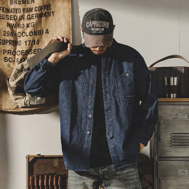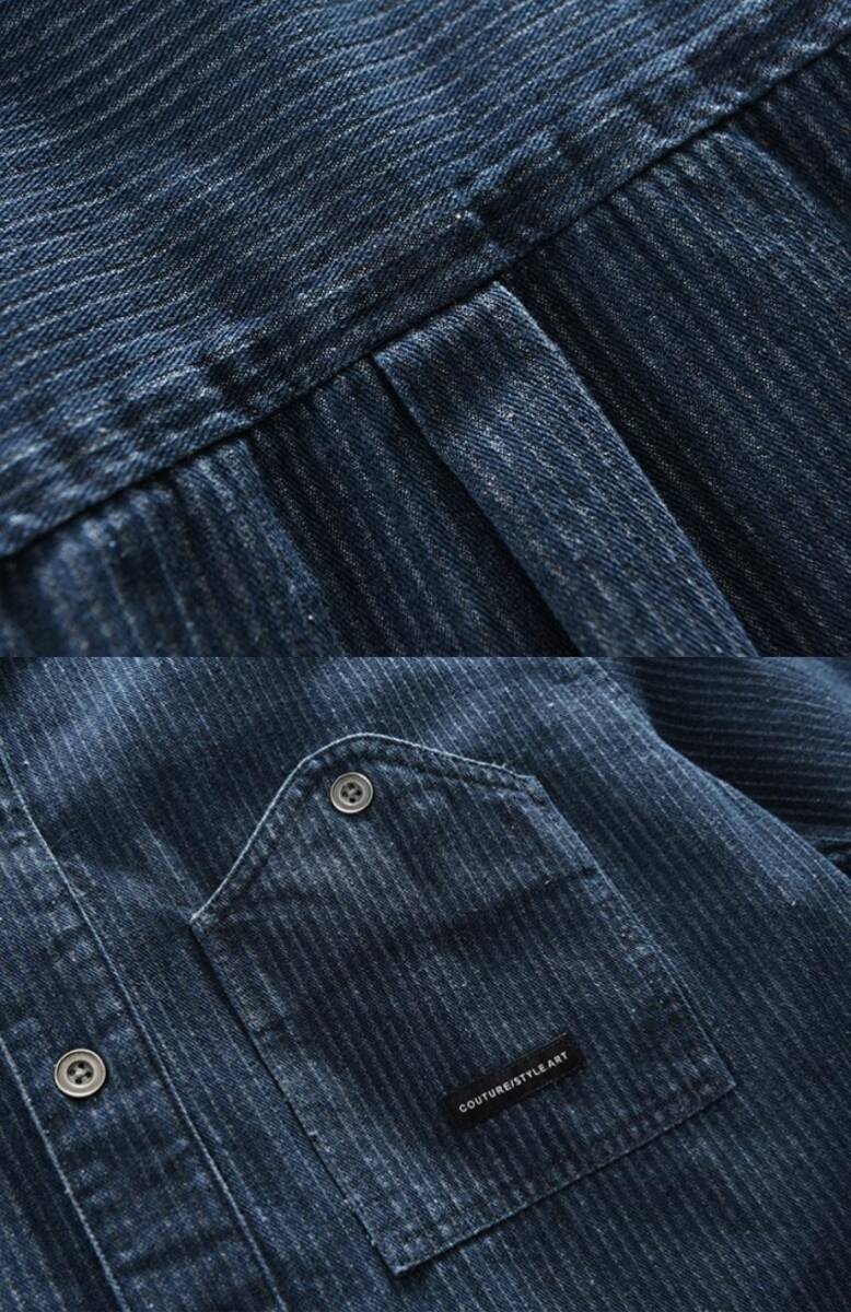 デニムシャツ 長袖シャツ デニム ウエスタンシャツ ワークシャツ シャツジャケット 新品★メンズ トップス 春秋服 ストライプ【M202310020941】ブルー L
