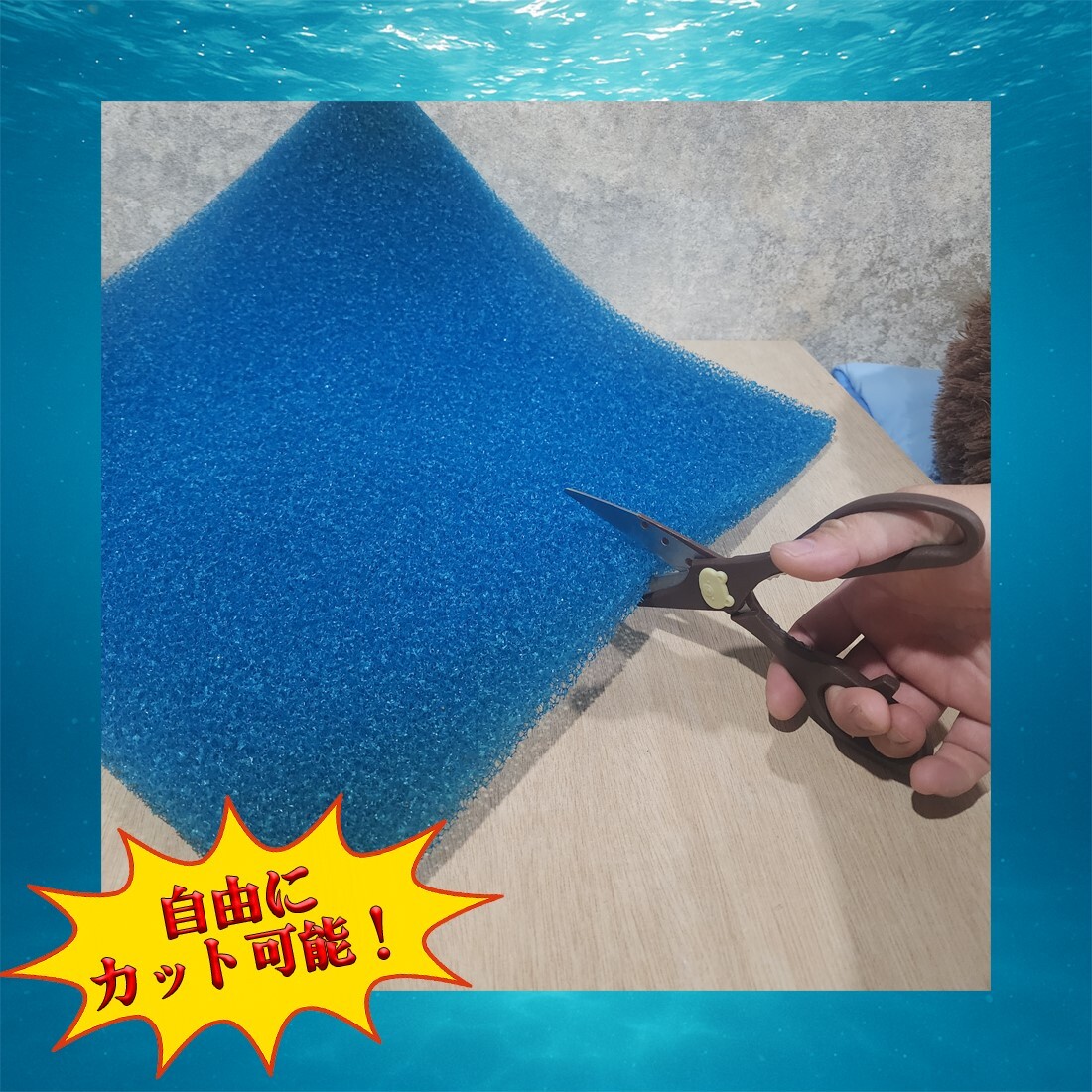 50cm×50cmの大判タイプなので、上部・外掛け・オーバーフロー濾過槽など用途に合わせて