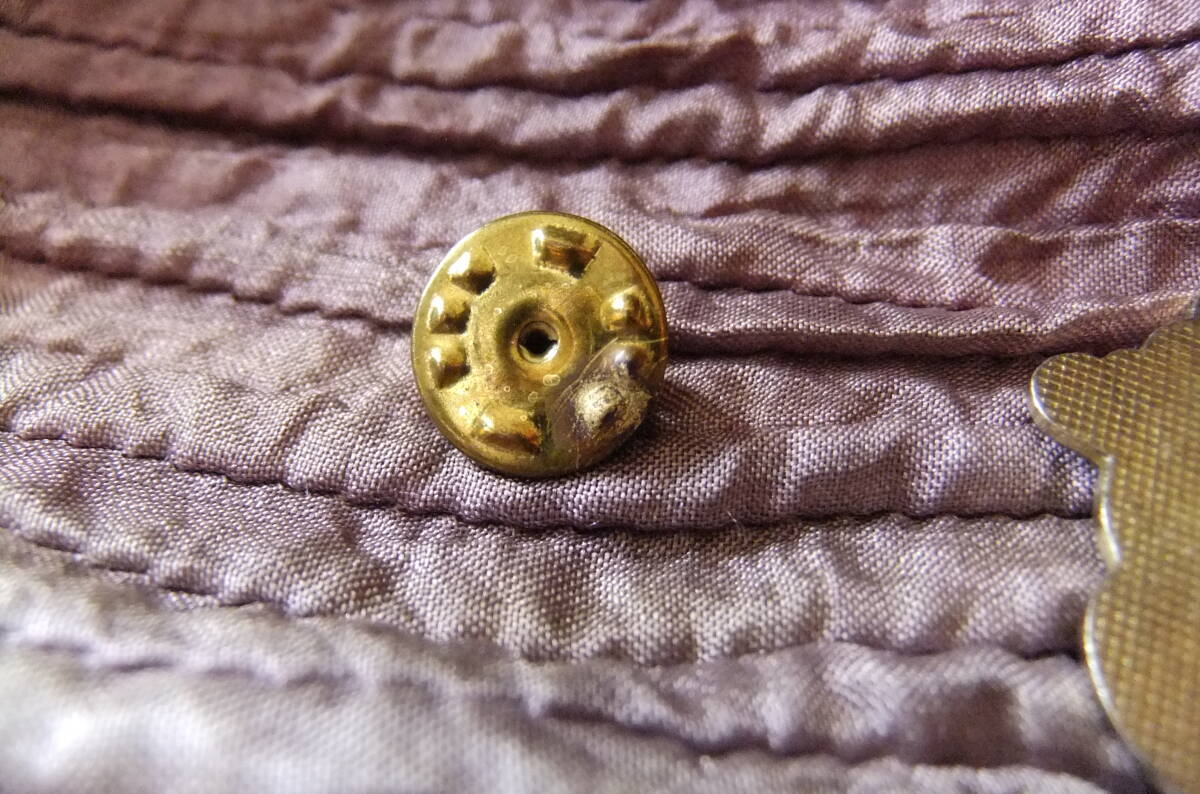 裏面全体に変色、擦り傷、汚れ、留め具にも汚れ、変色があり全体的にダメージを感じさせます。