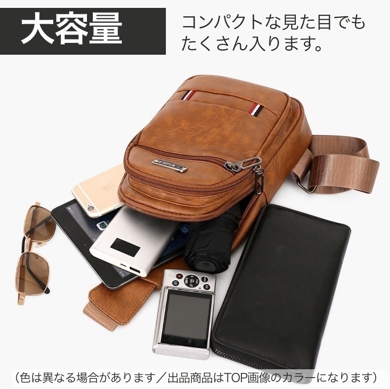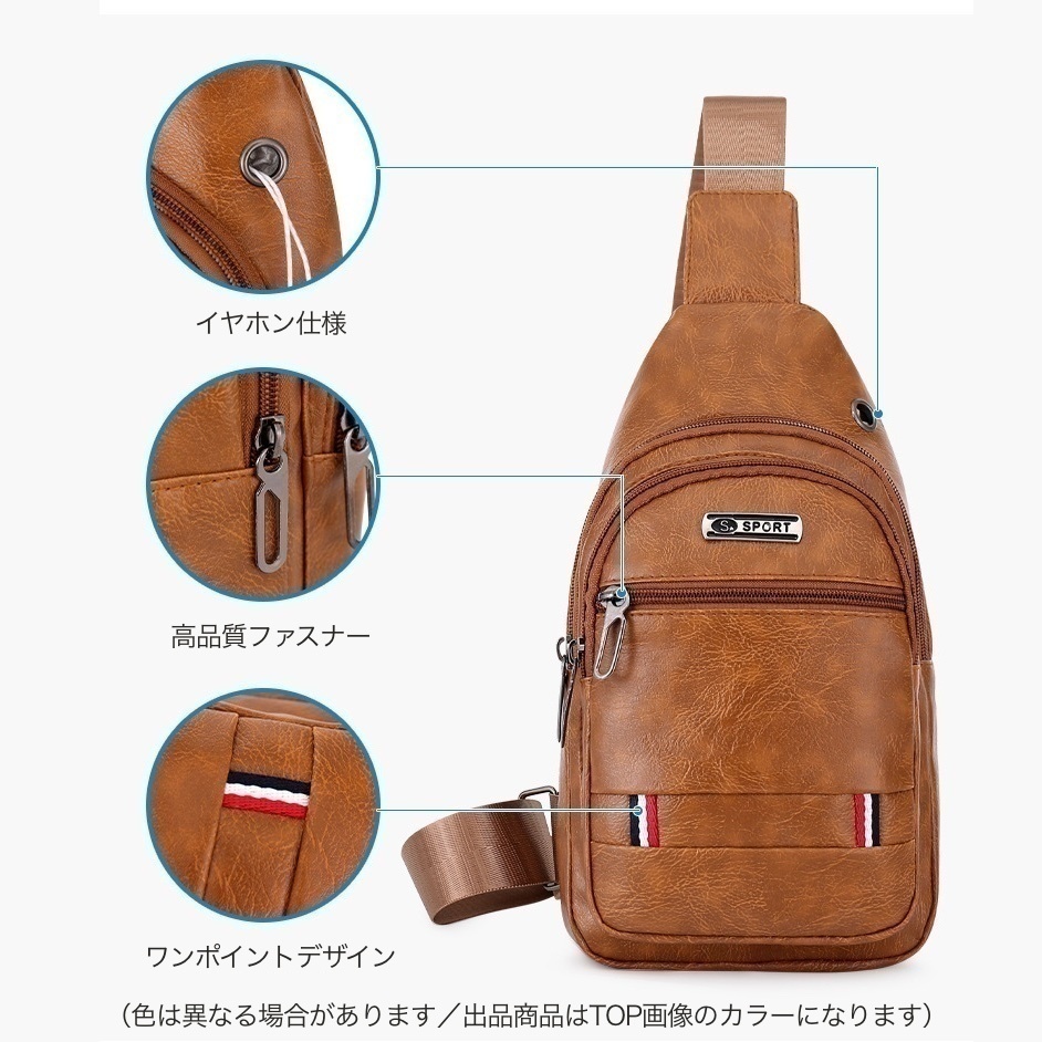 ボディバッグ ブラック レザー 革 ショルダーバッグ 斜めがけ 肩がけ 軽量 メンズ 大容量 バック MOC308