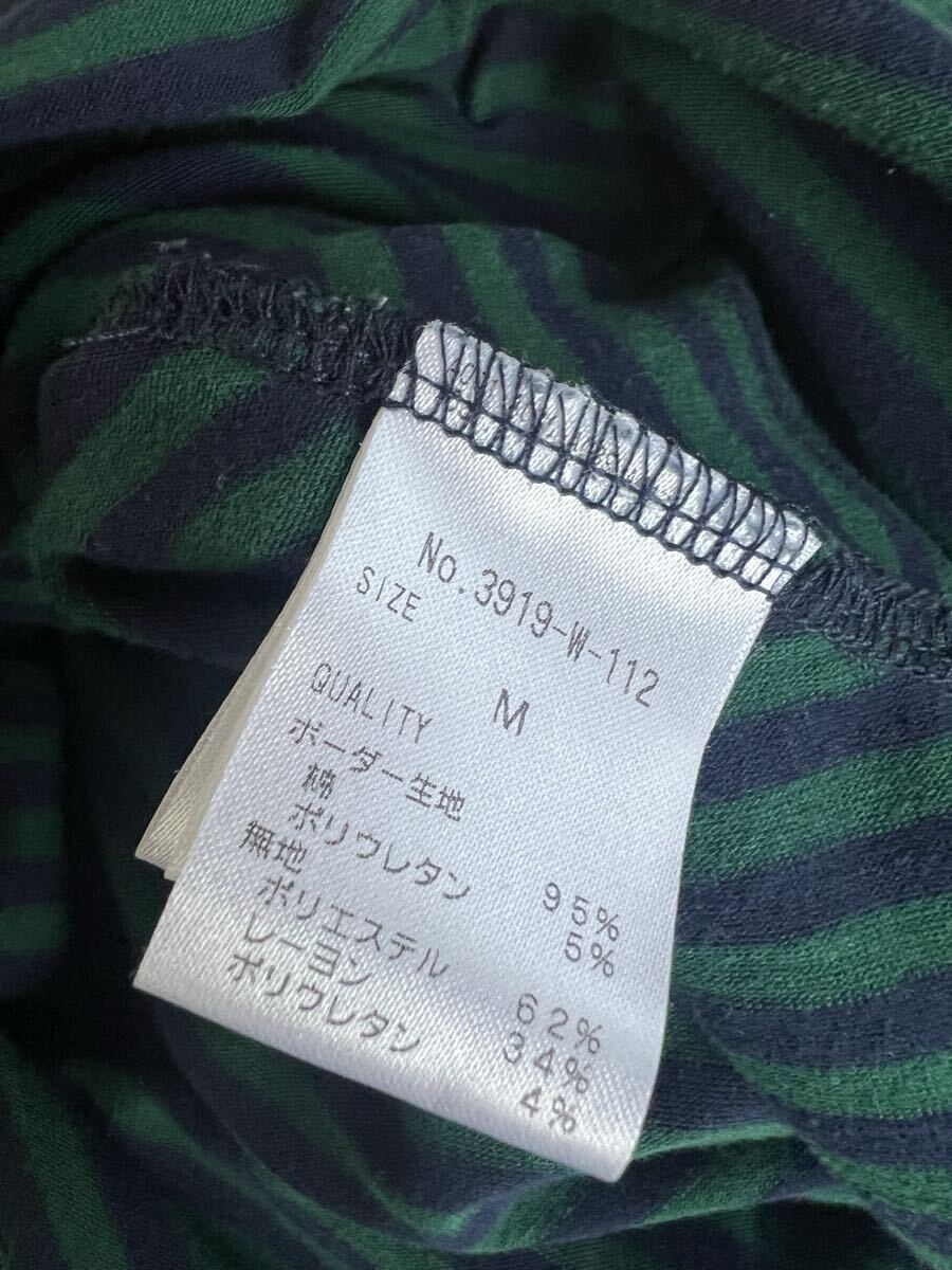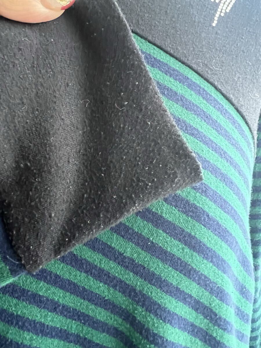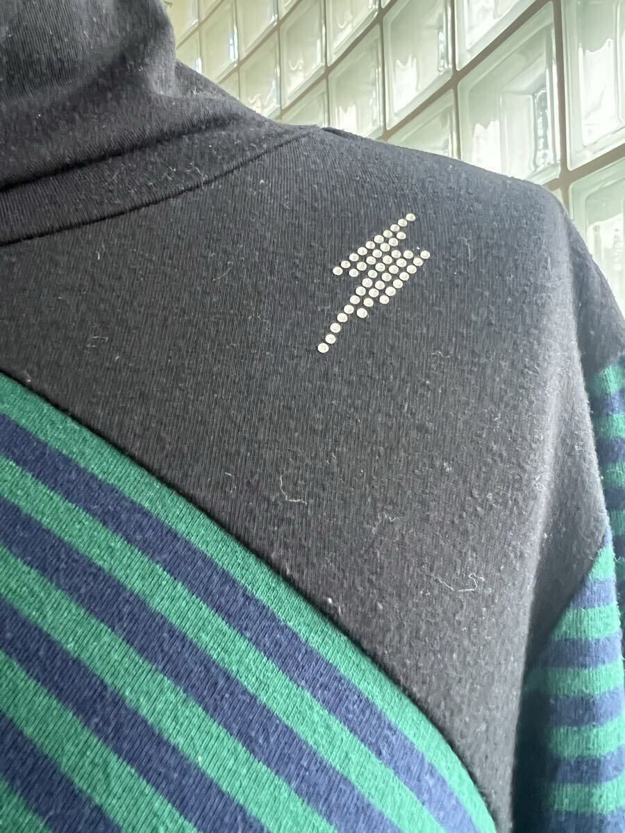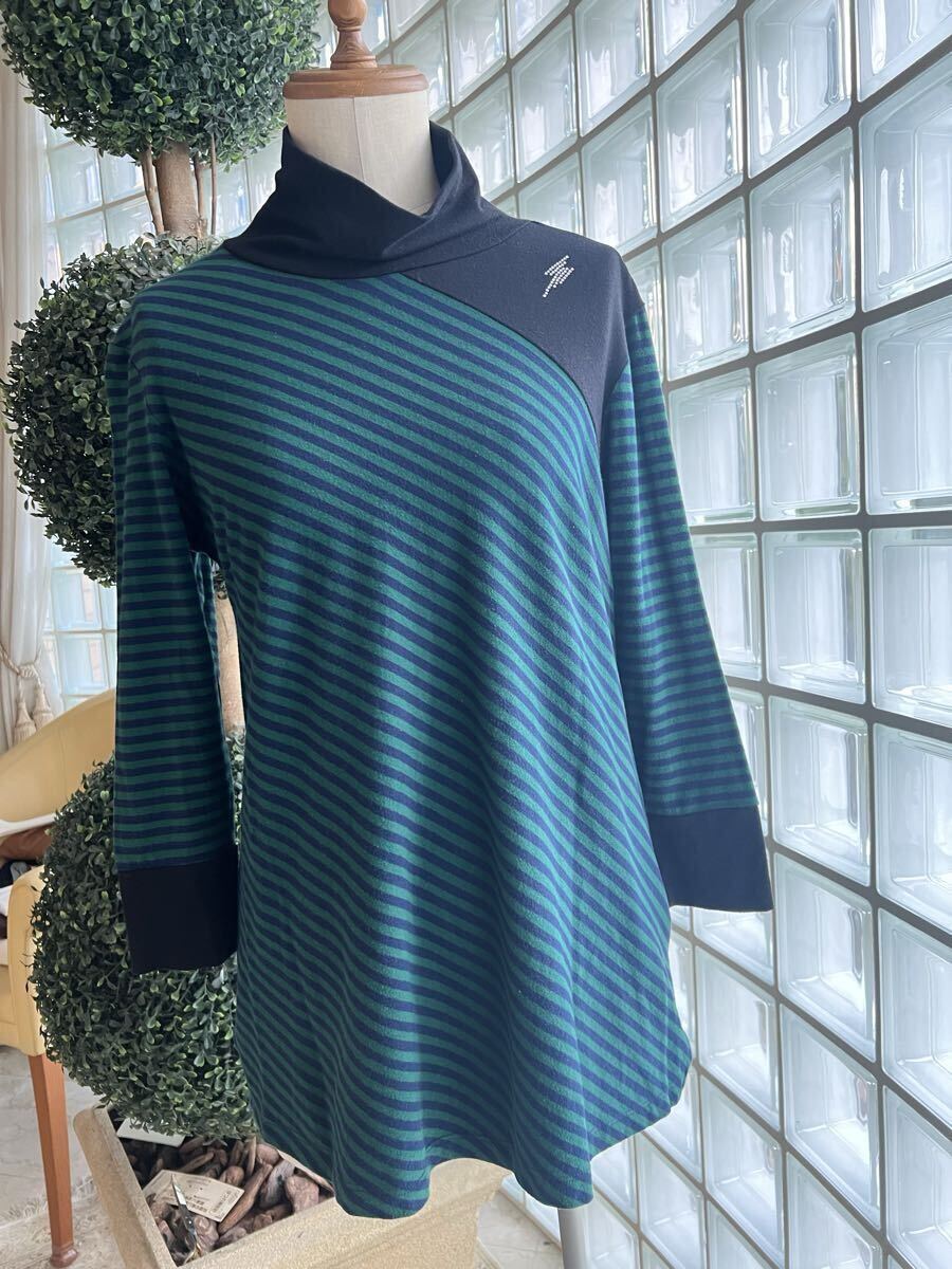 SUPER LADY by KANSAI YAMAMOTO 山本寛斎★黒/グリーン ボーダー ハイネック チュニックトップス Mサイズ USED♪