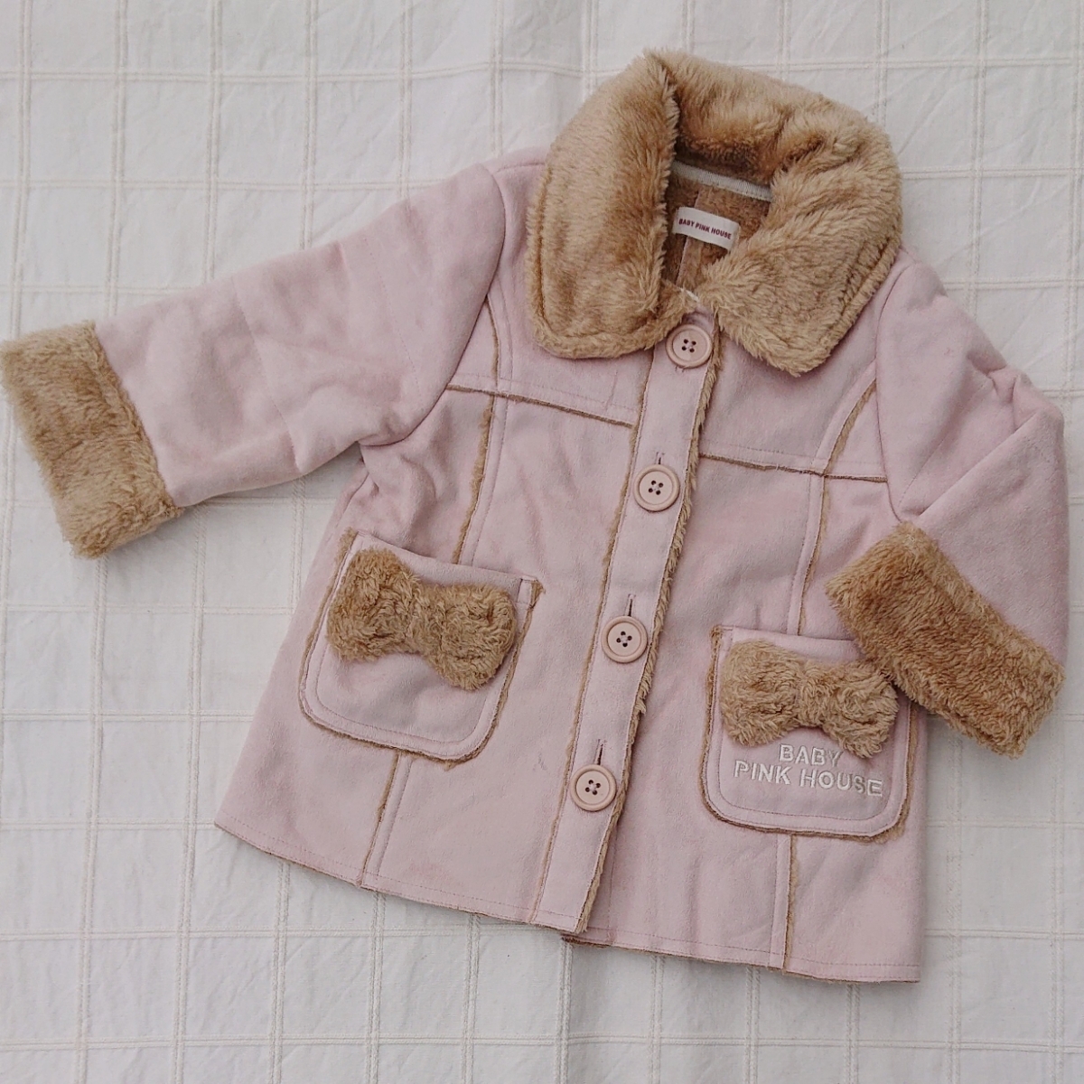 BABY PINK HOUSEのベビーピンクのムートン風コートです