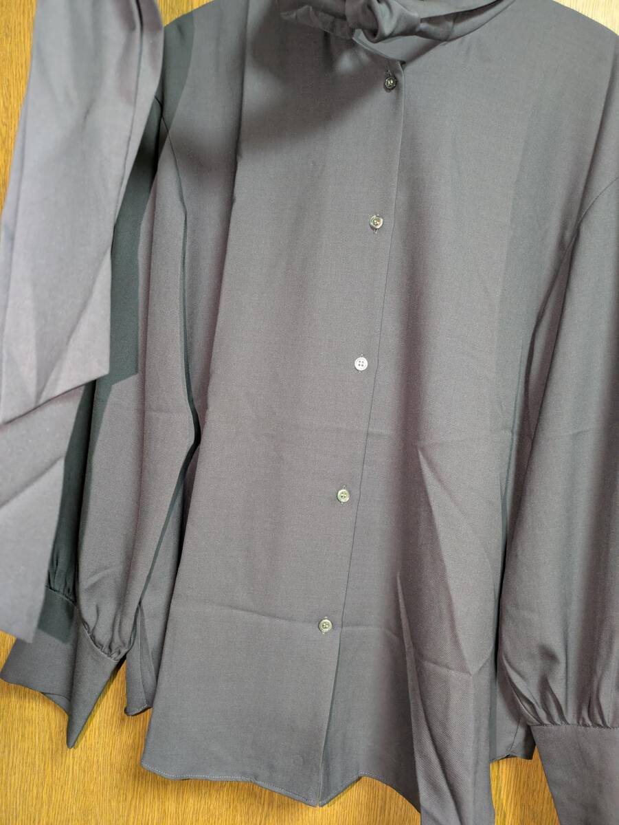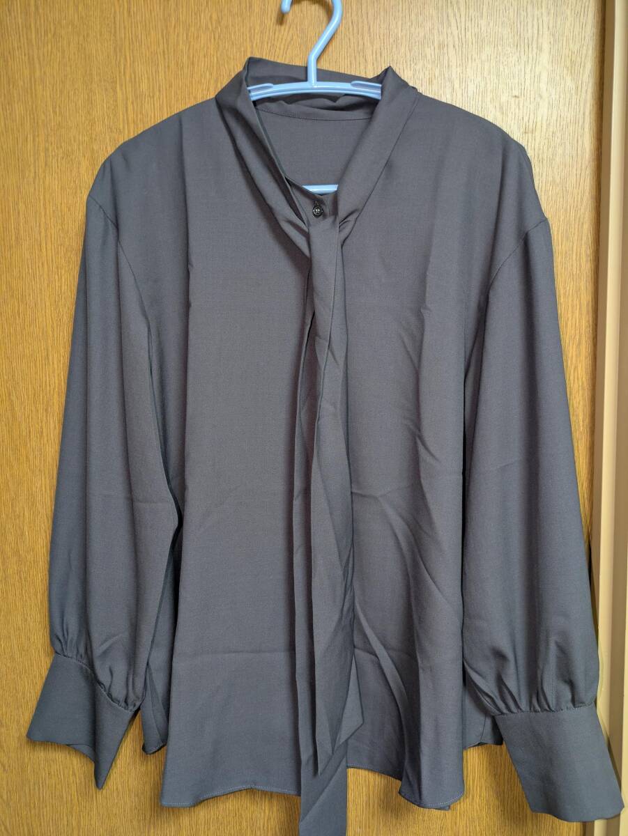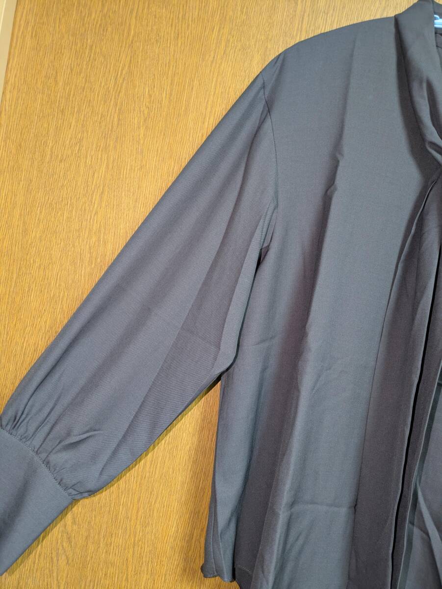 アンタイトル 昨季美品 チャコールグレー 長袖ボウタイブラウス 大きいサイズ 4 11号 12号 デザインシャツブラウス XLL ジャケットインナー