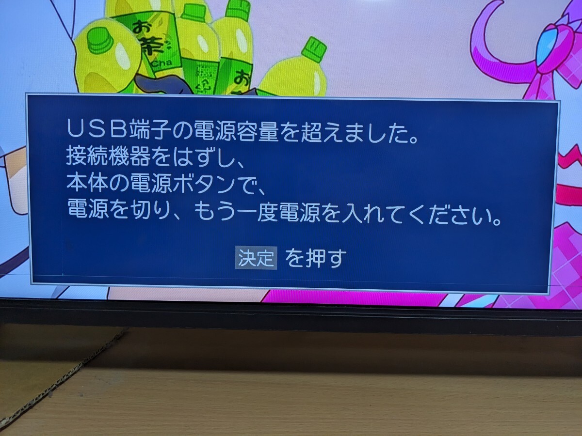 USB端子のエラーメッセージのためハードディスク録画が出来ません。
