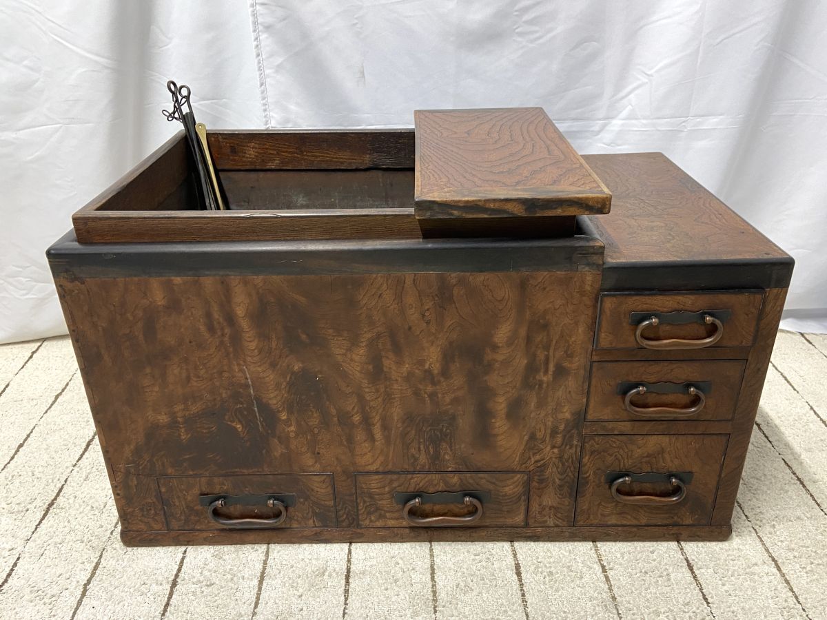 | 【R746】昭和レトロ 関東長火鉢 江戸火鉢 銅壺 囲炉裏 古民具 古道具 長火鉢 木製 茶道具 当時物 ヴィンテージ b | ||