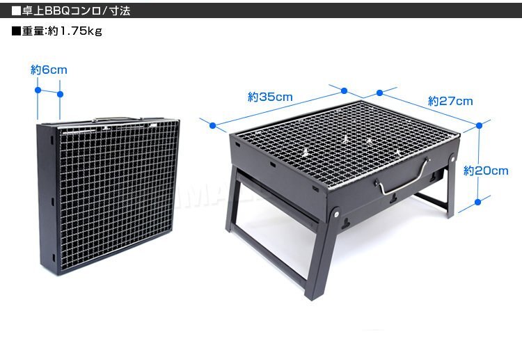 | 便利な焼きアミ付きのバーベキューコンロ。 厚み6cm!コンパクトに折りたためるからいつでも手軽にBBQが楽しめます♪ 焚き火台としての使用も可能です。 取っ手付きで持ち運びも便利! アウトドアやキャンプ、ビーチなどレジャーシーンでおすすめのBBQコンロです! 【商品仕様】 ・本体サイズ(約):35×27×20cm ・収納サイズ(約):35×27×6cm ・重量(約):1.8kg ・素材:鉄他 【商品内容】 ・本体 ・バーベキュー網 【注意事項】 ・必ず屋外で使用してください。室内、テント内、換気の悪い場所では使用しないでください。一酸化中毒、酸欠、火災の恐れがあります。 ・組み立て、後片付けは安全のため手袋をはめて行ってください。 ・海外製品で、簡易梱包での輸入のため風防に擦れや多少の小キズなどがある場合がございますが、商品自体には問題ありませんのでご了承下さい。 ・商品は、モニターによって色合いが異なって見える場合があります。 ・仕様・デザインは改良のため予告なく変更することがあります。 |